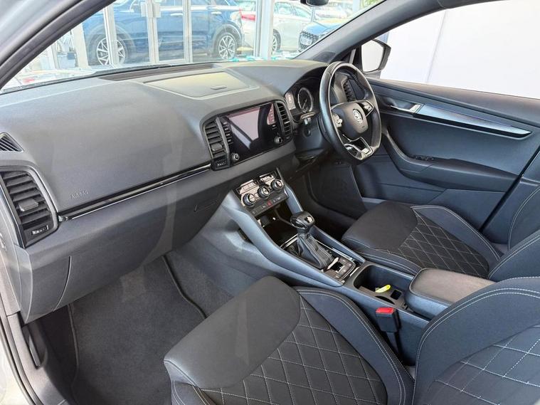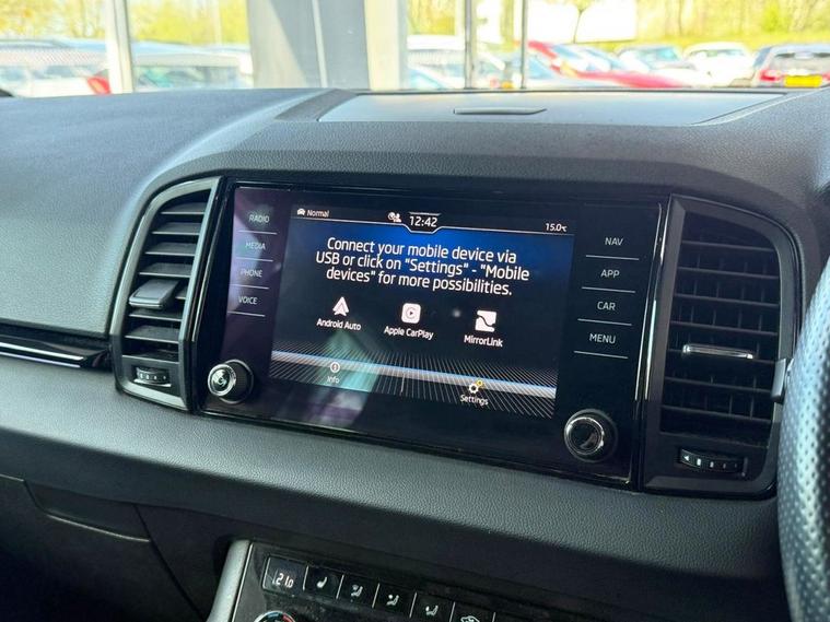 This 2021 Skoda Karoq TSI SportLine is a fantastic example of a well maintained vehicle, boasting a Euro 6 compliant 1.5 litre petrol engine. Its SportLine trim level offers a refined driving experience, complemented by a suite of convenient features. Youll appreciate the Automatic Headlight Control, which includes automatic activation, and the integrated Light and Rain Sensor that also manages the auto dimming rear view mirror. Manoeuvring is made simpler with front and rear parking sensors, alongside a helpful rear view camera. Furthermore, the fixed panoramic sunroof adds an open and airy feel to the cabin. This particular Karoq stands out with its impressive acceleration, reaching 0-60mph in just 8.5 seconds, demonstrating its responsive performance. Its Euro 6 classification signifies efficient emissions, and it falls into a low insurance group, making it an economical choice for many drivers. These aspects, combined with its comprehensive feature set, indicate that this Skoda Karoq offers a superior ownership proposition compared to other vehicles in its class.