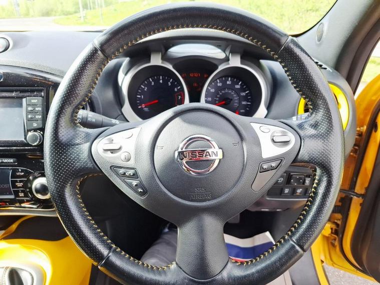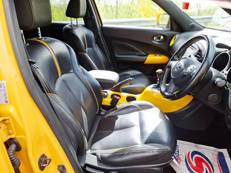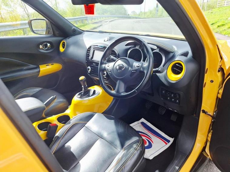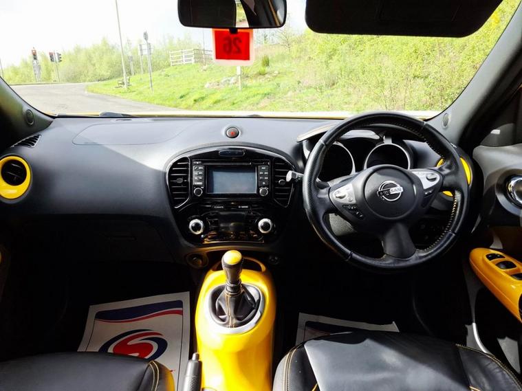 2014 NISSAN JUKE 1.2 DIG-T TEKNA SUV IN YELLOW ONLY COVERED 50000 MILES FROM NEW WITH SERVICE HISTORY AND 2 KEYS THIS CLEAN LOW MILEAGE EXAMPLE JUKE 1.2 TEKNA IS IN EXCELLENT CONDITION AND DRIVES LIKE NEW THE NISSAN IS FULLY LOADED WITH AMAZING EXTRAS INCLUDING- SERVICE HISTORY-2 KEYS-17 ALLOYS FULL BLACK LEATHER-NAVIGATION-360 CAMERA-REVERSE CAMERA-CLIMATE CONTROL-PRIVACY GLASS-CRUISE CONTROL-ULEZ COMPLIANT THIS VEHICLE WILL COME WITH A NEW MOT AND SERVICE AT POINT OF SALE PLEASE CALL TO BOOK AN APPOINTMENT Strictly viewing by appointment only please call 01443852105 or 01443852105 to arrange a viewing BASED IN TONTEG CF381PW THIS VEHICLE WILL COME WITH 12 MONTHS AA FREE BREAKDOWN COVER AS WE ARE AN APPROVED AA DEALERSHIP* WE OFFER FINANCE AND CREDIT/DEBIT CARDS ARE ACCEPTED- PART EXCHANGE WELCOME AND ALL CARS ARE VOSA VERIFIED MILEAGE