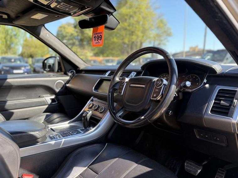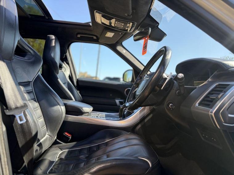 RANGE ROVER SPORT SVR 5.0 V8 + BIG SPECIFICATION + MERIDIAN SIGNATURE SOUND + SVO PREMIUM PAINT PALETTE (RIO GOLD) + BLACK INTERIOR WITH SVR EMBOSSED BUCKET SEATS FRONT & REAR + HEATED SEATS + TILT & SLIDE PANORAMIC ROOF + BLIND SPOT ASSIST + REAR HEATED SEATS + LANE ASSIST + CRUISE CONTROL + ELECTRIC TAILGATE + REVERSE CAMERA + HEATED STEERING WHEEL + ELECTRIC MEMORY SEATS + ELECTRIC STEERING COLUMN + ULEZ COMPLIANT + HEATED WINDSCREEN + 4 ZONE CLIMATE CONTROL + BLUETOOTH + DAB + MANY MORE EXTRAS 12 MONTHS + 6 MONTHS WARRANTY + PART EXCHANGE WELCOME + NATIONWIDE DELIVERY AVAILABLE