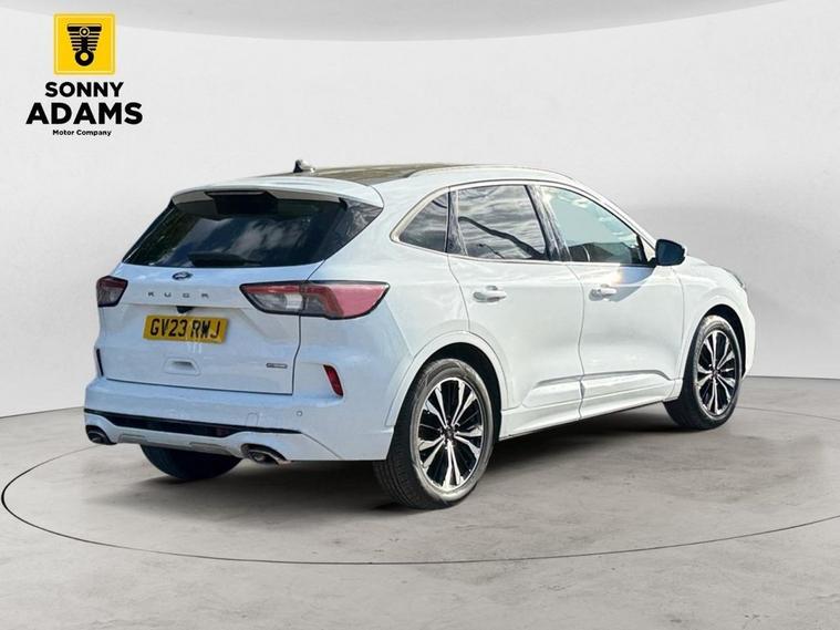 The Ford Kuga 2.5h Duratec ST-Line X Edition SUV 5dr Petrol Hybrid CVT Euro 6 (190 ps) delivers a premium driving experience with sporty styling, advanced technology, and practical features. It rides on 19-inch high-gloss machined alloy wheels and features body-coloured bumpers and door handles, black roof rails, a large rear spoiler, LED headlights with automatic high beam assist, LED daytime running lights, LED fog lights, and a sporty ST-Line bodystyling kit including red brake calipers and aluminium foot pedals. The power panoramic roof, hands-free tailgate, and heated, power-folding door mirrors with puddle lights add convenience and style. Inside, the cabin is equipped with a 12.3-inch digital instrument cluster, ambient lighting, dual-zone electronic automatic climate control, heated driver and passenger seats, heated rear seats, sports-style front seats with high bolsters, a leather-trimmed ST-Line steering wheel with red stitching, and a 12.3-inch touchscreen with Ford SYNC3 navigation and DAB radio. Features such as multiple USB and 12V sockets, sliding second-row seats, rear centre armrest with cup holders, and a Quickclear heated windscreen enhance comfort and practicality. Safety and driver assistance are comprehensive with ABS, ESC, traction control, pre-collision assist with autonomous emergency braking, lane keeping aid with lane departure warning, driver attention alert, ISOFIX mounts, rear parking camera and sensors, hill start assist, tow hooks, tyre pressure monitoring, and eCall emergency assistance. This vehicle benefits from a full service history, ensuring it has been meticulously maintained throughout its life. For added peace of mind, if the MOT is under six months, well ensure a fresh MOT is completed before sale. The vehicle also comes with a standard three-month back-to-base warranty, with the option to extend it to a nationwide warranty for added reassurance. Nationwide delivery is also available. Finance Available Special 9.9% APR Offer We offer in-house finance with zero deposit options and flexible monthly payments. Apply in minutes and drive away the same day! For more details or to arrange a viewing, contact 02030183551 or email enquiries dealer's website