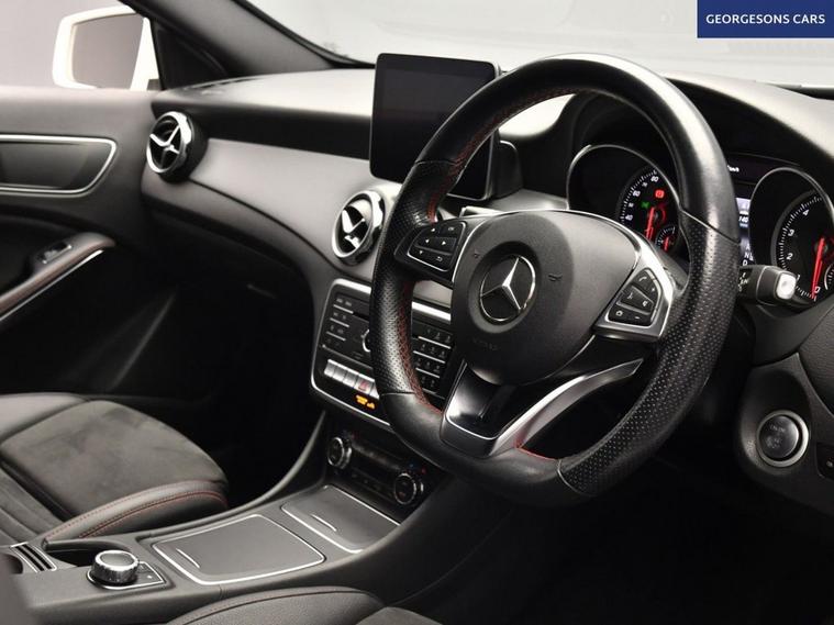 The Mercedes-Benz GLA 180 AMG Line Edition combines a responsive 1.6-litre turbo petrol engine with 122hp, delivering 0-62mph in 9.2 seconds and up to 48.7mpg in this front-wheel-drive setup with a smooth 7-speed DCT automatic transmission. The AMG Line Edition trim brings sporty styling with a premium interior. Navigate effortlessly with integrated satellite navigation, Apple CarPlay, Bluetooth and DAB radio. The electric tailgate and reverse camera make loading and parking easy. Stay comfortable with dual-zone climate control and heated front seats. Cruise control with speed limiter and lane assist enhance safety and relaxation on every journey. The spacious five-door SUV includes a 481-litre boot for practicality.