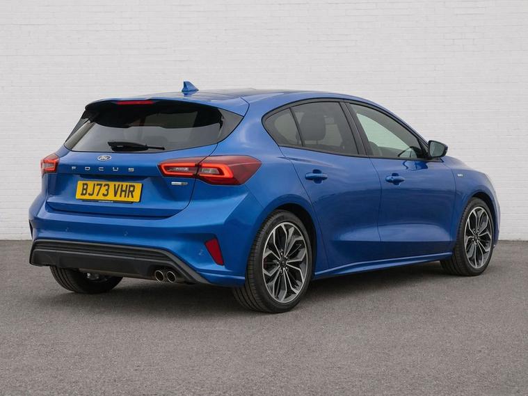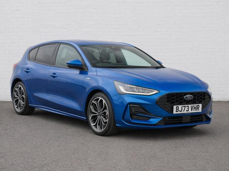 This 2023 Ford Focus ST-Line X offers exceptional value with remarkably low mileage for its age, having covered just 14, 207 miles. This Euro 6 compliant 1.0L Petrol Hybrid model combines efficiency with a sporty ST-Line X trim, featuring a premium branded sound system, Android Auto and Apple CarPlay integration via the Ford SYNC4 Navigation with a 13.2in touchscreen, and convenient wireless phone charging. Further enhancing your driving experience, this Focus includes front and rear parking sensors for effortless manoeuvring, and the DEATC dual-zone climate control ensures comfort for all occupants. The Winter Pack adds heated seats and a heated steering wheel, perfect for colder journeys. These features collectively demonstrate a superior level of comfort, technology, and driver assistance compared to other vehicles in its class.