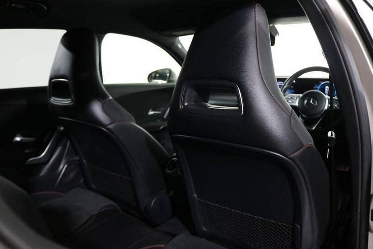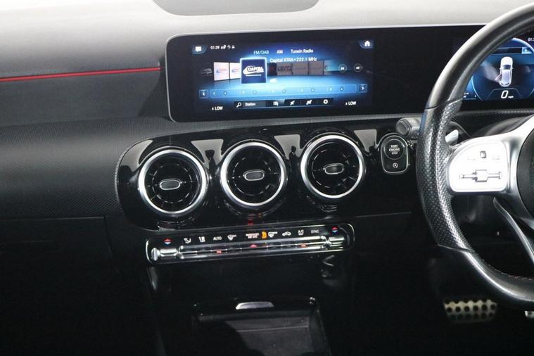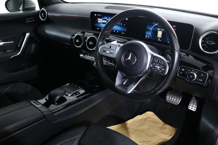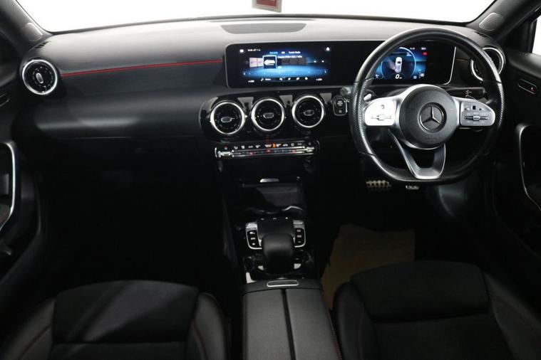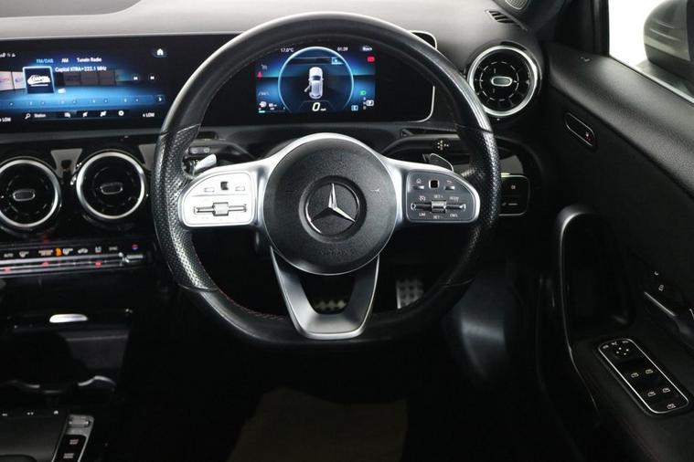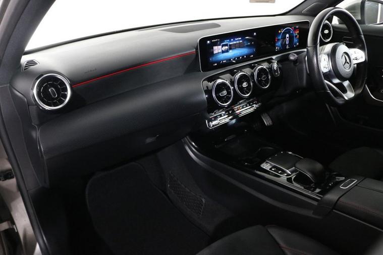 This desirable Mercedes A180d AMG Line Executive edition finished in Mojave Silver looks fantastic complemented by 18 inch Alloy Wheels, LED Headlights, AMG Body Styling and Rear Privacy Glass. Find your way with integrated SATELLITE NAVIGATION with Large LCD Display. Park in ease with REVERSE CAMERA and FRONT & REAR PARKING SENSORS. Sit in luxury with 1/2 LEATHER Upholstery with HEATED FRONT SEATS. Keep connected with BLUETOOTH Phone System. Listen to your music through DAB Digital Radio. Comfortable to drive with Dual-Zone CLIMATE CONTROLLED AIR CONDITIONING and CRUISE CONTROL with Speed Limiting Function. Well equipped with Power-Fold Door Mirrors, Auto Headlights and Rain Activated Wipers. Safe to journey with Attention Assist, Active Brake Assist and Lane Keeping. Also fitted with ISOFIX seats, Multifunctional Steering Wheel, Dynamic Select, Alarm and Remote Door Locking with 2 x keys. Buy in confidence with SERVICE HISTORY with 6 x Documented Services.
