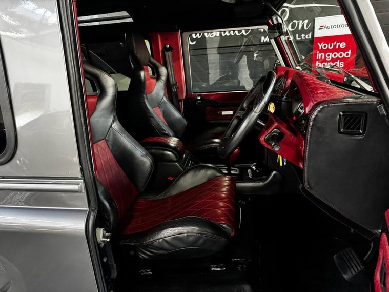 One-of-a-Kind Custom 1985 Land Rover Defender 90 TVR V8 Power This is a truly unique, ground-up custom build based on a 1985 Land Rover Defender 90. Retaining only the original body shell, the entire vehicle has been comprehensively rebuilt and upgraded to an exceptional standard throughout. At its heart sits a powerful TVR 5.0 V8 engine, paired with a fully reconditioned ZF automatic gearbox, delivering effortless performance and a distinctive driving experience. Key Features & Upgrades: Bespoke powder-coated V8 chassis TVR 5.0 litre V8 engine Fully reconditioned ZF automatic gearbox 4 forward-facing seats Premium red and black quilted leather interior Front bucket seats for added comfort and support Kevlar-modified front wings SVX-style front grille and headlight surrounds Electronic handbrake Bilstein dampers with lowering springs and anti-roll bars Overfinch 20-inch Olympus alloy wheels Alpine navigation and infotainment system Towbar fitted Wide arch kit for a more aggressive stance Build & Value: A project of this level would cost well in excess of £60, 000 to reproduce, making this an exceptional opportunity to own a fully bespoke Defender without the time, expense, or uncertainty of a ground-up build. This Defender combines classic heritage with modern engineering and luxury touches, making it ideal as a standout daily driver, weekend vehicle, or showpiece. A rare opportunity to own a completely bespoke build offering both presence and performance in equal measure.