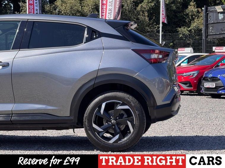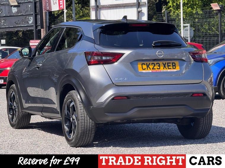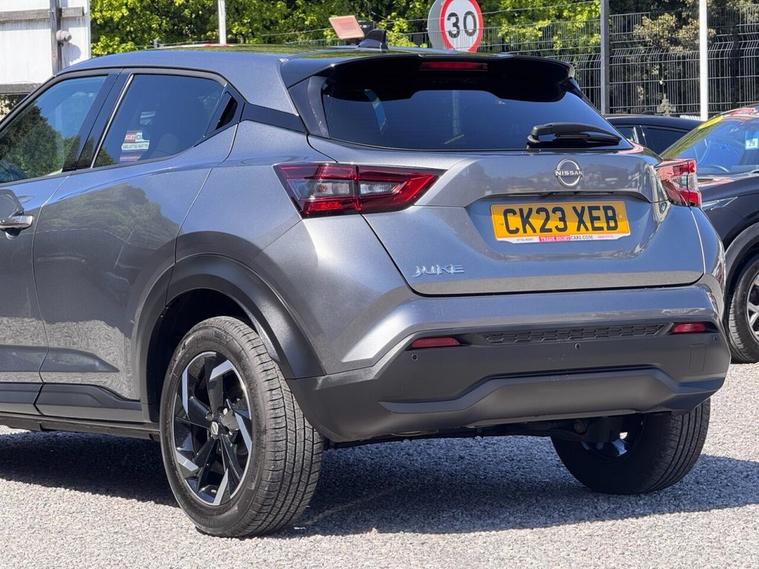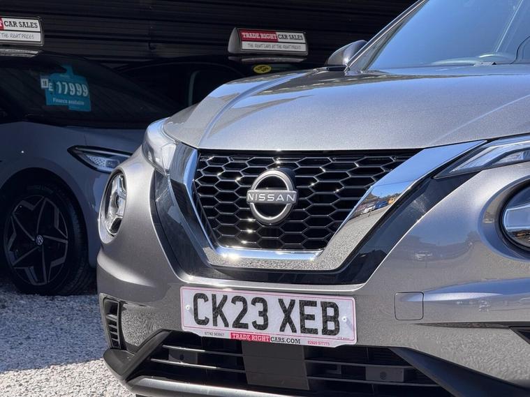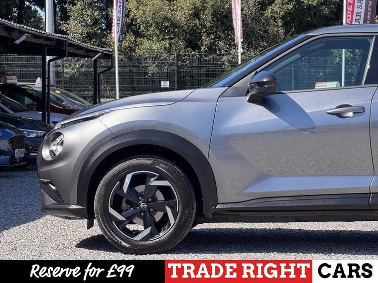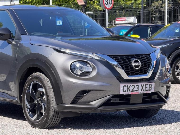 JUST ARRIVED & READY TO DRIVE AWAY! 2023/23 Nissan Juke 1.0 DIG-T N-Connecta [Nav] finished in Gun Metallic. We are pleased to offer this lovely 5 door petrol SUV. This is the highly desirable and economical 1.0 litre model with a 7 speed automatic [DCT] transmission that offers 112 BHP. Insurance group 12/50. It has covered just 10, 598 miles with full service history (3 services, 2 @ Nissan) and drives as you would expect. Just serviced upon arrival. MOT until 28th March 2027 with no advisories. The car is ready to drive away. We will also include a complimentary 12 month AA breakdown cover. One owner from new. Euro 6 status - ULEZ compliant. A superb low mileage example with the sought-after N-Connecta specification. Highlights include; 17 two-tone diamond cut alloy wheels, active ride control, Apple CarPlay & Android Auto, cruise control with speed limiter, DAB, bluetooth connectivity with BT audio, USB, selectable driving modes, LED DRLs, A/C, privacy glass, front/rear parking sensors with rear parking camera, hill start assist, high beam assist, navigation with 8 high resolution touchscreen display, remote central locking x 2 with keyless start, rear spoiler, AUX and voice recognition. The full specification list can be found on our website. Advertised below the AutoTrader RRP. Please let us know if you would like any further information or a detailed video sent via WhatsApp.