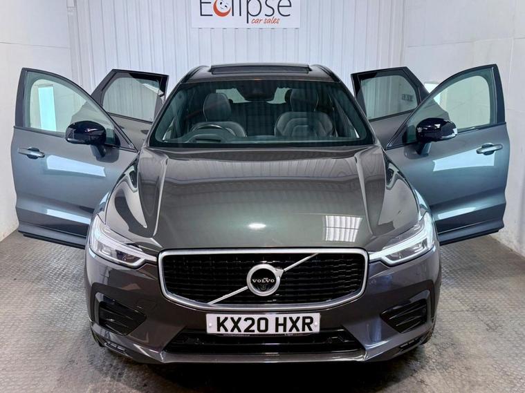 Volvo XC60 2.0 B5 MHEV R-Design Pro SUV first registered in March 2020. Finished in Pine Grey with a Charcoal Interior and 21 Inch Alloy Wheels. Spec Includes Sliding Panoramic Glass Roof | Adaptive Cruise Control with Speed Limiter | Reversing Camera with Front and Rear Sensors | Satellite Navigation | Electric Folding Door Mirrors | Heated Electric Front Seats | Heated Steering Wheel | Android Auto | Apple Car Play | Bluetooth Connectivity | DAB Radio | Dual Zone Climate Control | Lane Keeping Aid | Park Assist | Head Up Display | Selectable Drive Modes | Powered Tailgate | Tempa Spare Wheel and Jack | Convenience Pack | Family Pack | Intellisafe Pro Pack | Intellisafe Surround | Xenium Pack. MOT due March 2027.