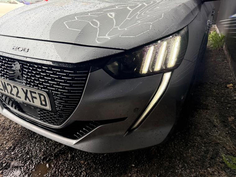 This 2022 Peugeot E-208 GT is a clear vehicle history example, offering a modern electric driving experience. As an electric vehicle, it boasts a 50 kWh battery with a maximum range of 225 miles when new. Charging is convenient, with a full charge at home using a 7kW charger taking approximately 7 hours and 30 minutes, and a rapid charge from empty to 80% achievable in just 30 minutes at a public charging station. This GT trim level comes equipped with notable features including Semi Auto Parking Assist, Mirror Screen with Apple CarPlay and Android Auto, and a Bluetooth Telephone Facility. For enhanced safety and convenience, it also includes Blind Spot Monitoring and a Visibility Pack with automatic headlights.The Peugeot E-208 GT stands out with its comprehensive suite of advanced features. The Semi Auto Parking Assist takes the stress out of parking, while Mirror Screen seamlessly integrates your smartphone for navigation and entertainment. The Blind Spot Monitoring system provides an extra layer of awareness on the road, alerting you to vehicles in your blind spots. These elements combine to offer a more refined and secure driving experience compared to other vehicles in its class, making this electric Peugeot E-208 GT a compelling choice for those seeking efficiency and technology..