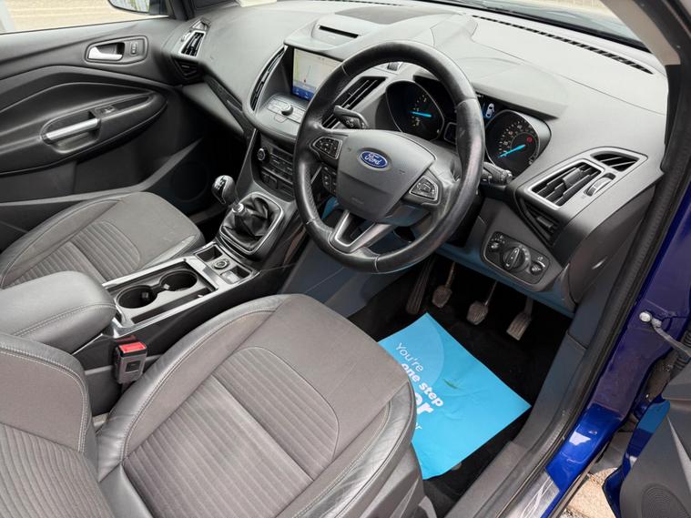 This 2018 Ford Kuga TDCi Titanium boasts a full service history, with its last service completed at 71743 miles, offering excellent provenance. This stylish SUV is equipped with a 1.5L Diesel Engine and meets Euro 6 emissions standards. Notable features include an Appearance Pack, automatic halogen headlights with LED daytime running lights, and keyless entry for your convenience. Inside, you'll find dual zone electronic automatic temperature control for personalised comfort and a Ford DAB Navigation System with Ford SYNC3, which includes Bluetooth connectivity.The Ford Kuga TDCi Titanium stands out with its impressive fuel economy, achieving up to 54 mpg, which indicates it is more economical than many similar vehicles. Furthermore, its low insurance group rating suggests that running costs will be more affordable. The vehicle also benefits from low CO2 emissions, highlighting its efficiency and environmental consideration compared to other cars in its class..