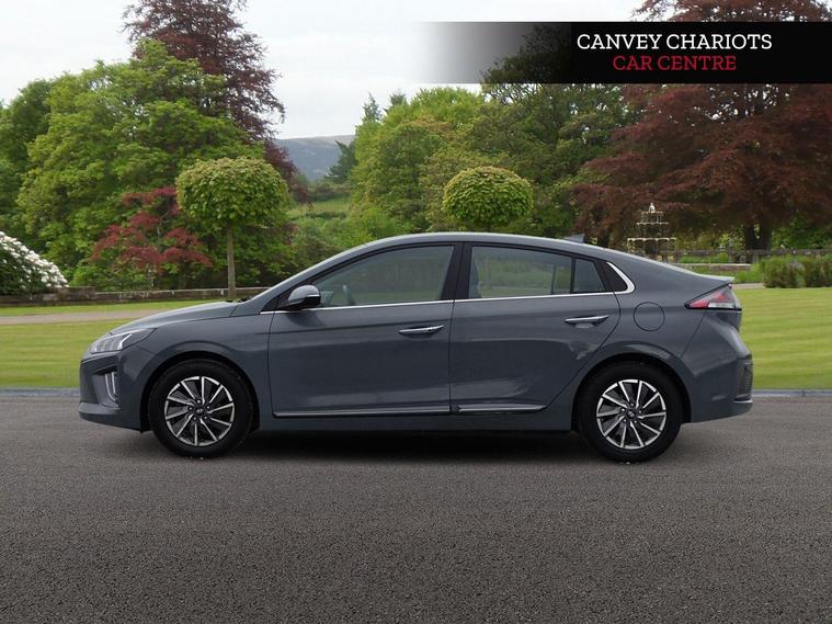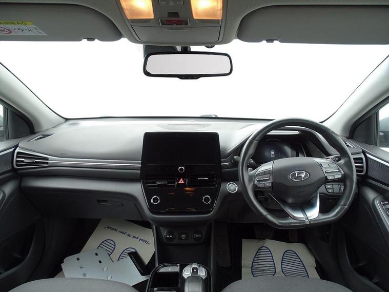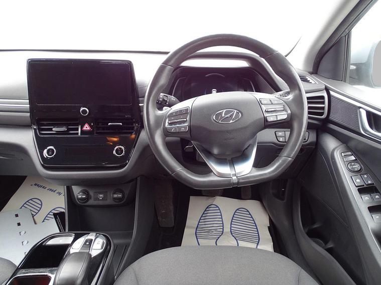 Discover this 2021 Hyundai IONIQ Premium, a superb electric vehicle offering an impressive blend of efficiency and comfort. With a substantial 43 kWh battery, this IONIQ provides a maximum range of 193 miles when new, making it ideal for both daily commutes and longer journeys. Charging is convenient, taking just 6 hours and 5 minutes at home using a 7kW charger, while rapid public charging can replenish the battery from empty to 80% in only 54 minutes.This Premium trim level is equipped with desirable features designed to enhance your driving experience. Enjoy the comfort of a heated steering wheel and dual zone climate control, ensuring a pleasant cabin temperature in all conditions. Parking is made easier with rear parking sensors and a rear camera with guidance system, while automatic headlights with a dusk sensor provide added convenience and safety. Furthermore, the IONIQ boasts a large boot space, offering ample room for your shopping or luggage, setting it apart from many other vehicles in its class..