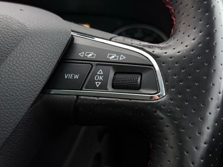 - Steering Wheel - Flat-Bottomed Perforated Leather with Red Stitching and FR Logo