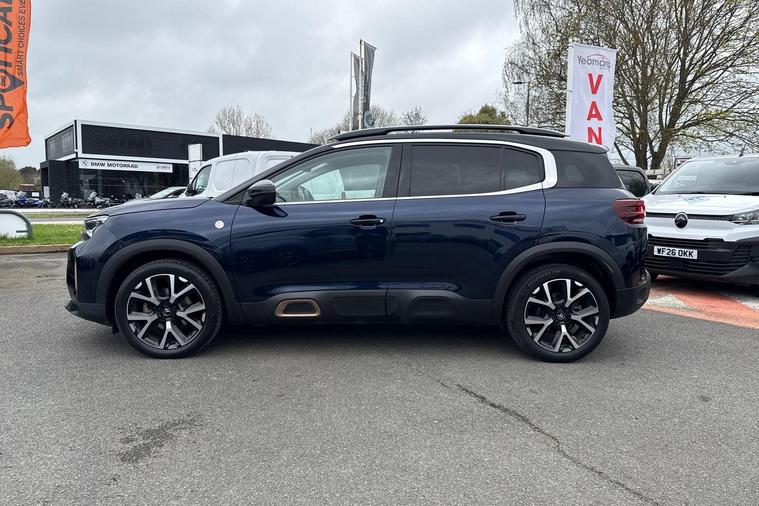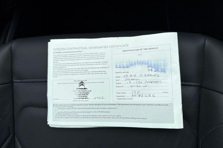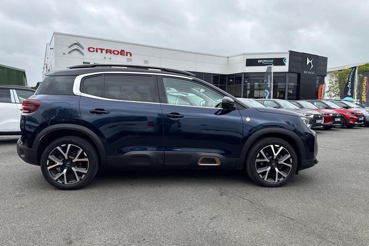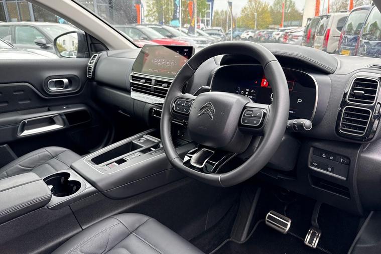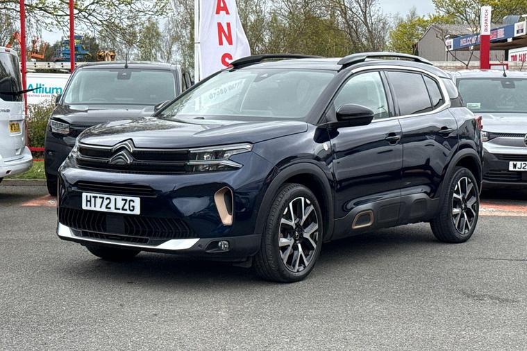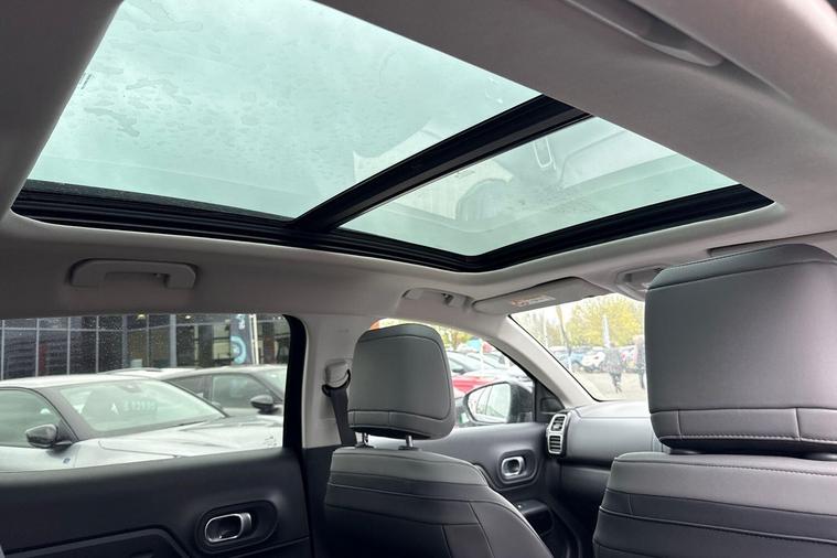 Boasting an incredibly low mileage of just 12590 miles for a 2023 model, this one owner Citroen C5 Aircross C Series Edition represents exceptional value. This Euro 6 compliant 1.2 litre petrol SUV comes with a full service history and the reassurance of Citroen manufacturer approval, along with a 12 month warranty for your peace of mind. It features an opening panoramic roof with an electric sunblind, a drive assist pack including adaptive cruise control and blind spot assistance, and keyless entry and start for ultimate convenience.Further enhancing your driving experience are the acoustic laminated windscreen with rain and brightness sensors, and electric heated folding door mirrors with LED approach lighting and blind spot monitoring indicators. The C5 Aircross C Series Edition also offers a large boot space, perfect for all your luggage or shopping needs. With an impressive fuel economy of 46 mpg, this vehicle is designed to be more economical than many others in its class, making it a smart choice for both your wallet and your journeys..
