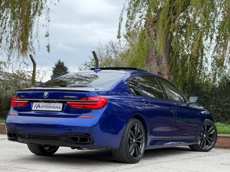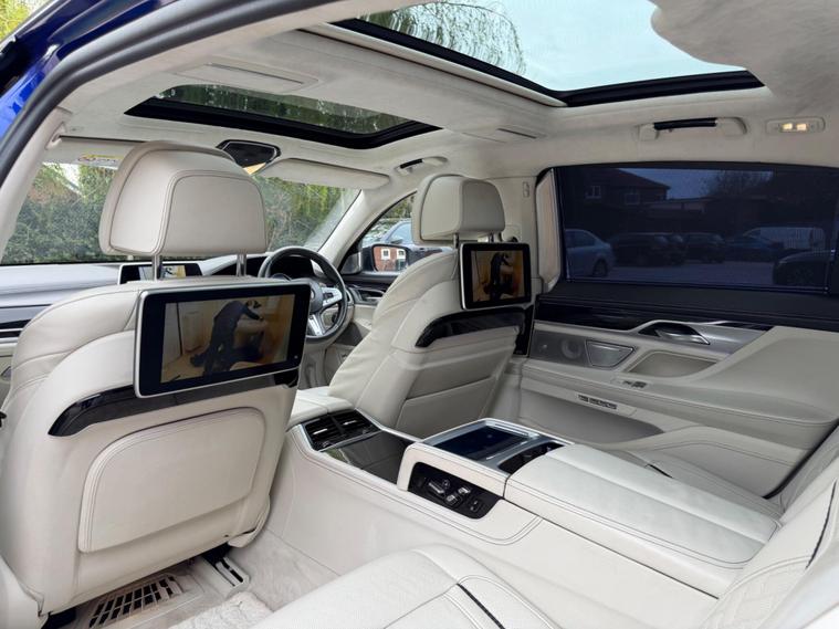 This BMW 7 Series 6.6 M760L V12 Finished in Metallic Blue and this vehicle comes with the following specification: 20in Alloy Wheels - Light M Double Spoke Style 760 | BMW Individual Full Merino Leather - Smoke White with Smoke White World | Exclusive Lounge | Exclusive Lounge Seating | Heated Front & Rear Seats | Ventilated Front & Rear Seats | BMW Individual Trim - Piano Black | Universal Remote Control | Universal Remote Control | Headlining - BMW Individual Alcantara | Ambient Air Package | Ambient Lighting | Apple CarPlay Preparation | BMW Display Key | BMW Icon Adaptive LED Headlights | BMW Professional Radio with Single CD Player - MP3 and DVD Playback Compatibility | Bowers and Wilkins Diamond Surround Sound System | Comfort Seats - Front & Rear | Digital Cockpit | Digital Cockpit | Sunblinds - Rear Windscreen and Rear Side Windows - Electric | Glass Sunroof - Sky Lounge Panoramic | Heat Comfort Package - Front and Rear | Head-Up Display | Massage Function Front & Rear Seats | Surround-View | TV Function | Navigation | Bluetooth Audio & Connectivity | DAB & Radio | Reverse Camera | 2 Keys | Full Service History |.
