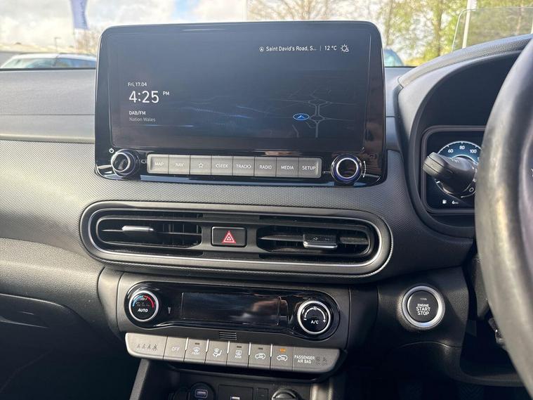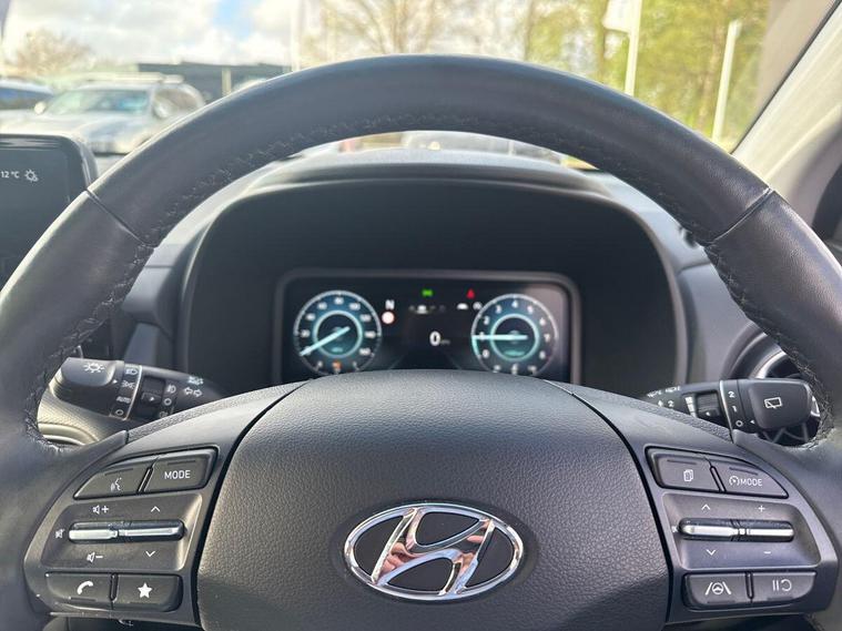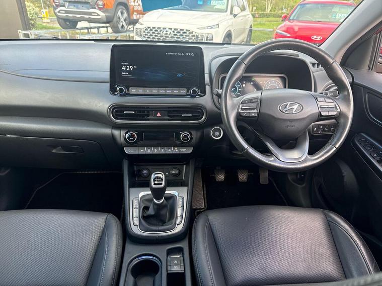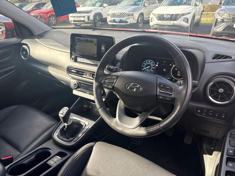 Hello and thank you for taking the time to view our vehicle listing.This is a superb Hyundai Kona 1.0 T-GDi MHEV Ultimate Manual, finished in the vibrant Pulse Red and having covered 29, 997 miles. This vehicle has been locally owned, and is presented in excellent condition, offering a fantastic combination of style, efficiency and high specification.Powered by the 1.0 T-GDi petrol engine with mild hybrid technology producing 120PS, this Kona delivers a smooth, responsive and economical driving experience. The mild hybrid system helps improve efficiency and reduce emissions, while the manual gearbox provides a more engaging drive, making it ideal for both town driving and longer journeys.As the range-topping Ultimate specification, this Kona comes packed with premium features and advanced technology. Inside, you’ll find a high-quality cabin with full leather upholstery, heated and ventilated front seats, heated rear seats, heated steering wheel and electrically adjustable seats for maximum comfort. The large touchscreen infotainment system with navigation, is complemented by a digital driver display.Additional features include a 360° surround view camera, front and rear parking sensors, adaptive cruise control, blind spot monitoring, lane keep assist, wireless phone charging, keyless entry with push button start and dual zone climate control, along with Hyundai’s SmartSense safety suite to keep you safe on every journey.The Kona is one of Hyundai’s most popular compact SUVs, offering a raised driving position, bold design and excellent practicality, making it a great all-round vehicle for everyday use.Prepared to the highest standard and ready to drive away, this is a fantastic opportunity to secure a high-spec Kona with a great local history.Contact us today to request your personalised video walkaround or to reserve this excellent vehicle.