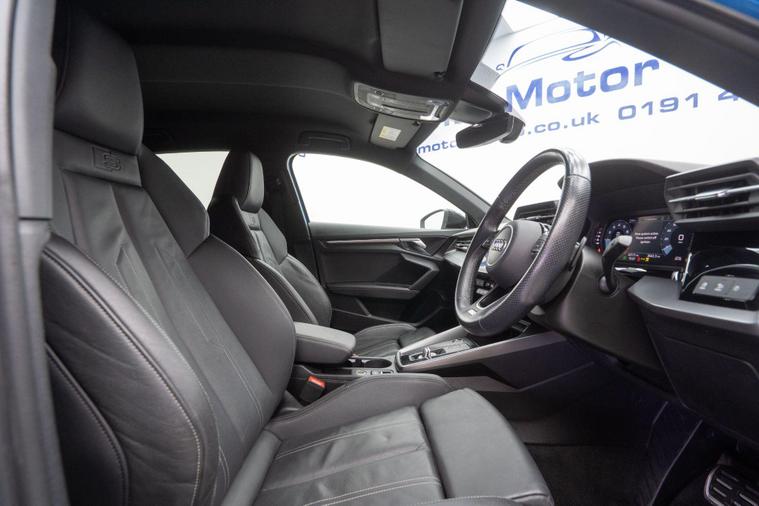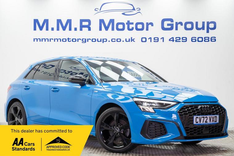 This 2023 Audi A3 TFSI S line is a superb example, having had only one owner since new. It boasts a 1.0 litre petrol engine, meeting Euro 6 emissions standards, and comes in the stylish S line trim. Inside, you'll find a practical Storage Package and Dual Zone Electronic Climate Control for your comfort. The Audi Smartphone Interface, compatible with Apple CarPlay, keeps you connected, while the LED headlights and dynamic rear indicators ensure excellent visibility. For added safety, it includes rear side airbags with a head airbag system.This Audi A3 offers a compelling blend of performance and efficiency. Its low CO2 emissions make it an environmentally conscious choice, and the generous boot space provides ample room for all your needs. With an acceleration of 0-62mph in 10.6 seconds, it delivers a responsive driving experience. These features collectively highlight how this particular A3 stands out from other similar vehicles on the market.Please call our experienced sales team on 01914800597 for any additional specification queries, an in depth appraisal/ Video call or maybe we can help fund your new car. All our vehicles are prepared to the highest standards by our expert technicians in our fully equipped preparation centre as we're an AA approved dealer. Every car must go through a strict and thorough inspection, Items that require attention, mechanically or cosmetically are addressed prior to delivery. We offer a wide range of Finance and Warranty packages as well as fantastic trade rates for allow wheel refurbs/colour changes, window tinting and much more. All our vehicles are subject to a £199 service support fee and are therefore supplied with pre delivery service, 12 months MOT, 12 months AA breakdown cover and 6 months Auto Protect warranty that can be extended up to 24 month. All vehicles are HPI clear a full report can be supplied at point of sale. Home Delivery can be arranged throughout the UK. We welcome part exchanges and can tailor finance packages to suit you. See our latest stock on dealer's website