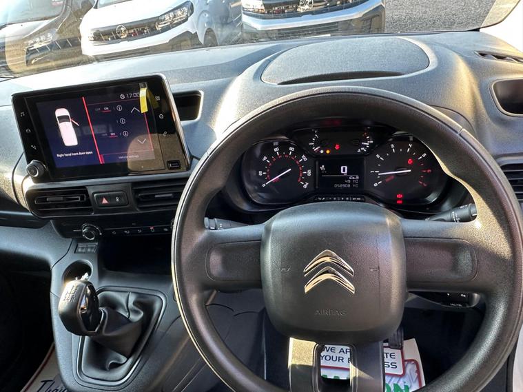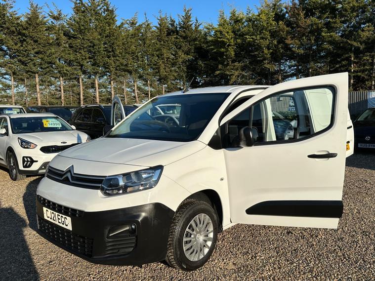 Boasting an exceptionally low mileage for its age, this 2021 Citroen Berlingo Enterprise M presents a compelling proposition. Powered by an efficient 1.5 litre BlueHDi diesel engine and meeting Euro 6 emissions standards, this 5 door model is a practical choice. It comes with a clear vehicle history check and an MOT valid until April 2027, offering peace of mind. The last service was completed at 58, 000 miles, and it includes a 6 month warranty for added security.This Berlingo Enterprise M is well equipped with an 8 inch colour touchscreen featuring Citroen Connect DAB Radio, Bluetooth handsfree, and USB and Aux in sockets. Comfort is enhanced by air conditioning and height adjustable halogen headlights with automatic on function. For convenience, rear parking sensors are fitted. Its impressive 3900 litre cargo volume makes it ideal for business needs, while its low CO2 emissions and low insurance group further highlight its cost effectiveness compared to similar vehicles..
