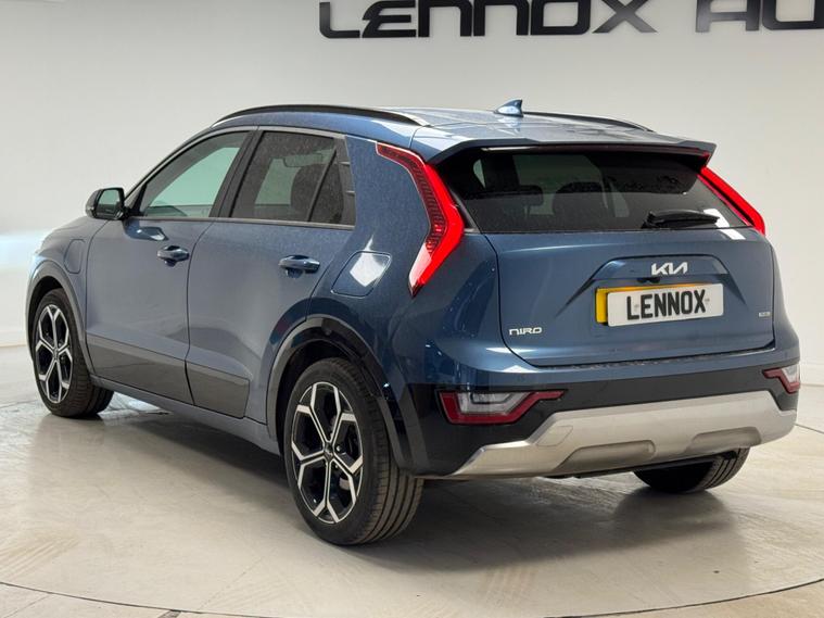 This 2024 Kia Niro GDi 4 is a superb example, having been owned by only one person since new. This Euro 6 compliant, 1.6 litre petrol plug in hybrid model offers an efficient and versatile driving experience. It comes equipped with a 5 metre Type 2 to Type 2 charger cable, ensuring convenient charging. Inside, you'll find seamless integration with Android Auto and Apple CarPlay, both controllable via voice commands, alongside Bluetooth connectivity for music streaming. For ease of parking, a reversing camera system with dynamic guidelines is included, complemented by rear parking assistance.The Niro GDi 4 also features dual zone climate control, allowing both driver and passenger to set their preferred temperatures independently. These features collectively demonstrate a higher level of specification and convenience compared to many other vehicles in its class, making this Kia Niro a well appointed and practical choice for your next car..