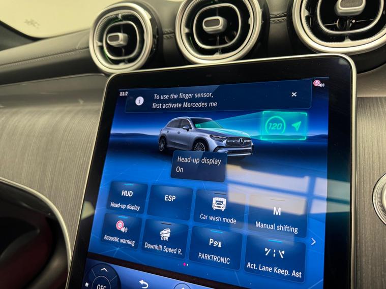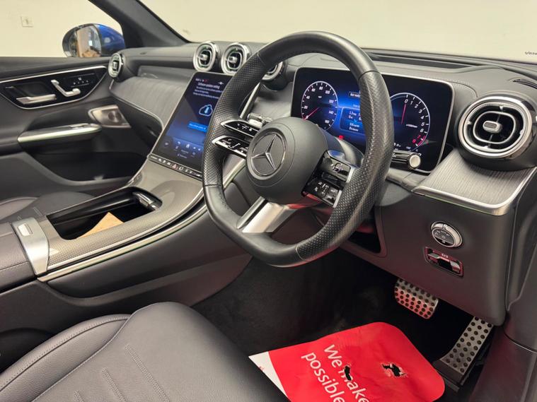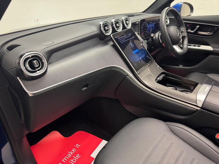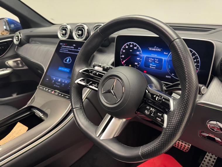 This 2024 Mercedes Benz GLC300e AMG Line (Premium Plus) is a superb example, having had only one owner since new. This four wheel drive plug in hybrid SUV boasts a 2.0L petrol engine and meets Euro 6 emissions standards. It comes equipped with the desirable AMG Line trim, offering a sporty aesthetic. Notable features include Pre Entry Climate Control for your comfort, Self Levelling Suspension for a smooth ride, and a Mode 2 charging cable for convenient household socket charging. The AC charging system and Radar Based Recuperation further enhance its efficiency and driving experience.Experience impressive performance with this GLC, accelerating from 0 to 62 miles per hour in just 6.7 seconds, a testament to its powerful yet efficient plug in hybrid technology. This acceleration figure highlights how this vehicle offers a more dynamic driving experience compared to many other similar models. The combination of its advanced hybrid system, four wheel drive capability, and sophisticated Mercedes Benz engineering ensures a refined and capable drive, making it an excellent choice for those seeking both performance and environmental consciousness..