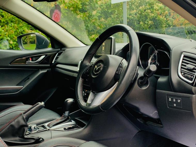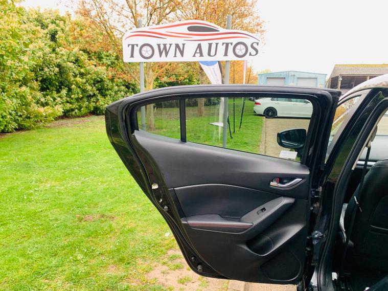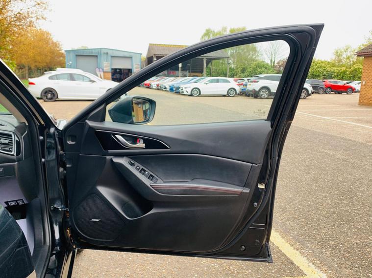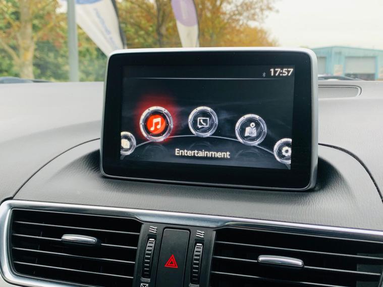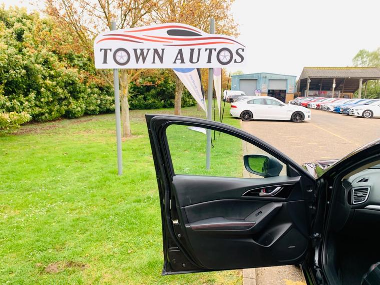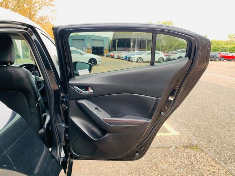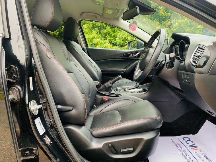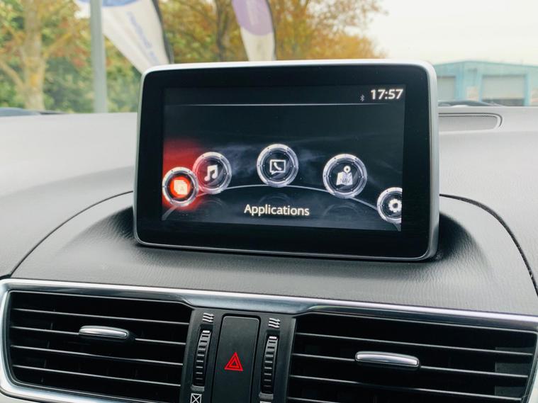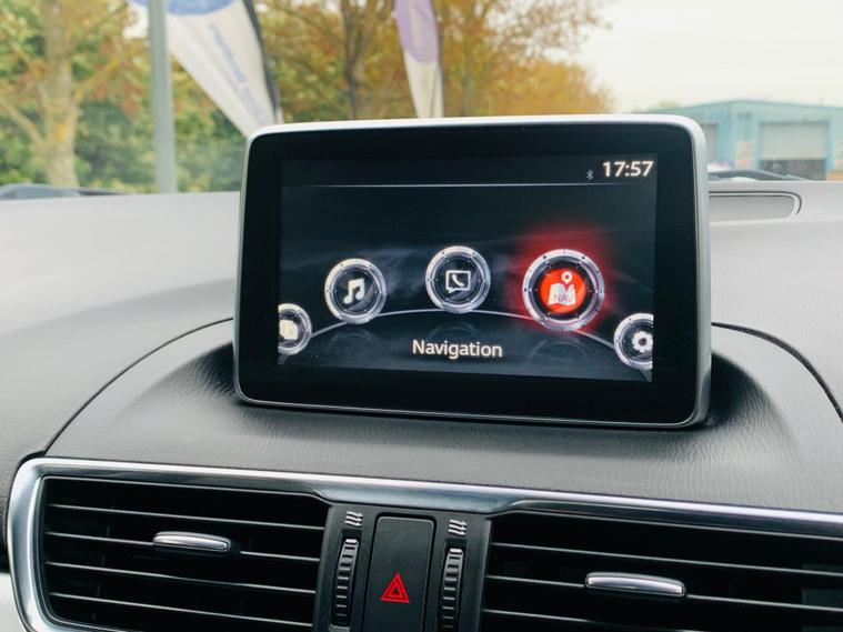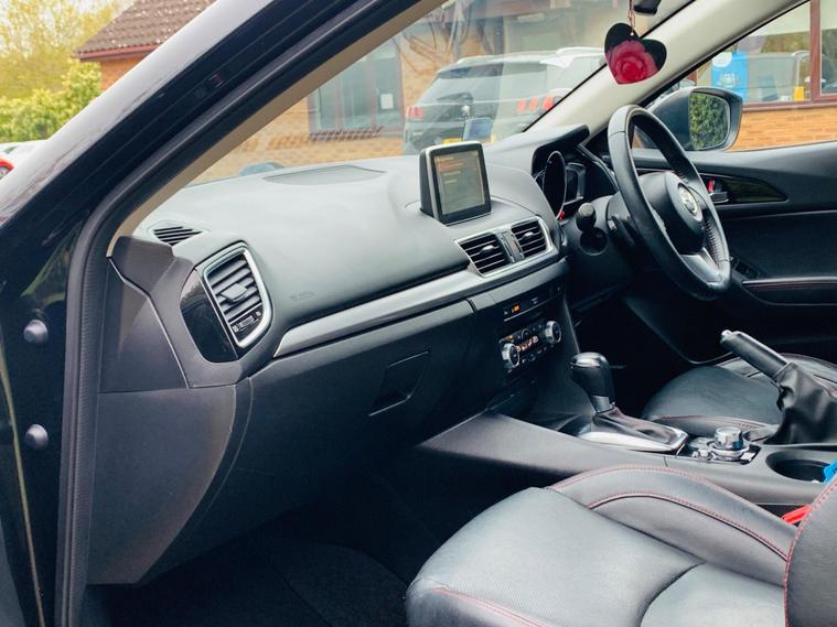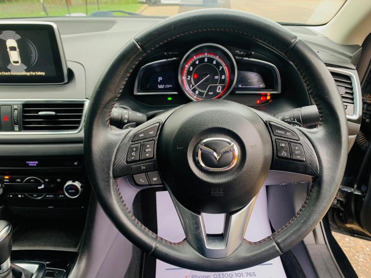 LEATHER SEATS, SERVICE HISTORY, LAST SERVICE@48K, PLENTY OF SERVICE RECEIPTS, MOT 24/11/2026, LEATHER SEATS, This 2016 Mazda3 SKYACTIV-G Sport Nav presents an exceptional ownership proposition with its remarkably low mileage of just 49, 875 miles, a clear vehicle history check, and a comprehensive specification. Powered by a 2.0 litre petrol engine, this Sport Nav trim level boasts luxurious black leather upholstery, a premium BOSE Centrepoint Surround Sound System with nine speakers, and front parking sensors for added convenience. Drivers will also appreciate the advanced Head Up Display and the clear visibility offered by the Bi-Xenon headlights. This Mazda3 stands out with its impressive fuel economy of 50 miles per gallon, indicating it is more economical than many other vehicles in its class. Furthermore, its low CO2 emissions and low insurance group highlight its cost effectiveness for everyday driving. These combined factors make this particular Mazda3 a sensible and appealing choice for those seeking a well equipped and efficient vehicle..