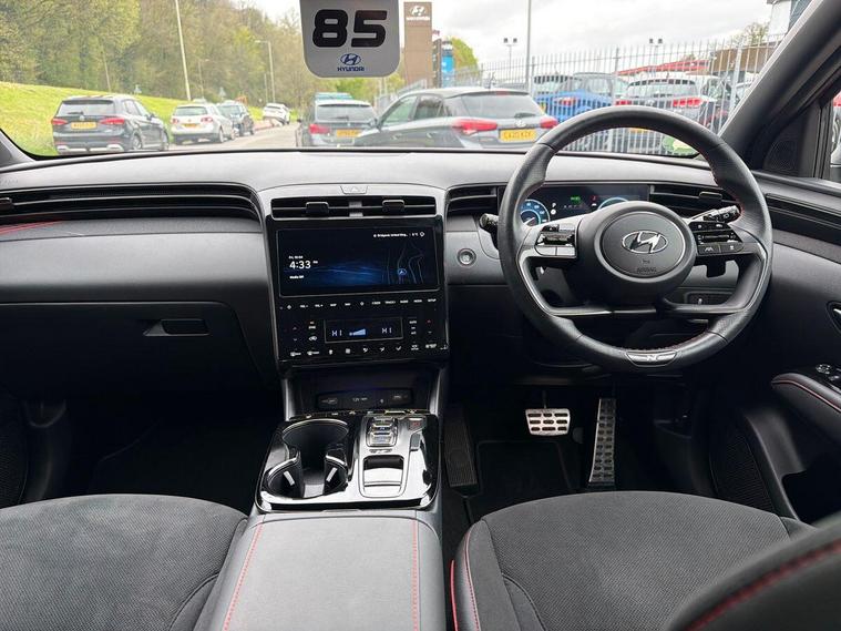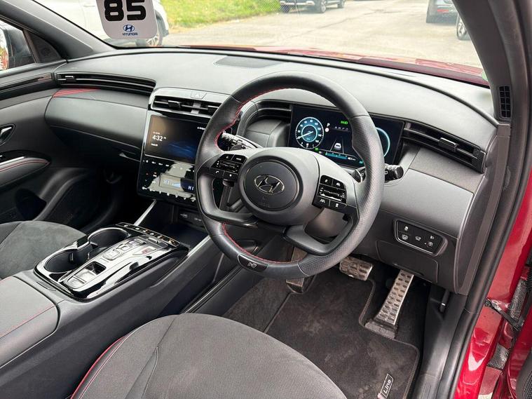 This 2023 Hyundai TUCSON h T-GDi N Line S presents an exceptional ownership proposition, having been driven only 19, 937 miles by a single owner. This Euro 6 compliant 1.6 litre petrol hybrid is presented in the sporty N Line S trim, offering a refined driving experience. It comes equipped with a useful rear camera for parking assistance, and bright LED MFR headlights with static bending light for enhanced visibility. Comfort is further assured with a heated steering wheel and a panoramic glass sunroof that can tilt and slide open. For effortless journeys, it features Smart Adaptive Cruise Control with a stop and go function.The TUCSON h T-GDi N Line S stands out with its impressive acceleration, reaching 0-62mph in just 8.0 seconds, demonstrating its responsive performance. This vehicle also benefits from a low insurance group, making it an economical choice for many drivers. Furthermore, its generous boot space provides ample room for luggage or shopping, indicating its practicality for everyday use and longer trips. These combined attributes suggest this Hyundai TUCSON offers a superior package compared to other vehicles in its class..