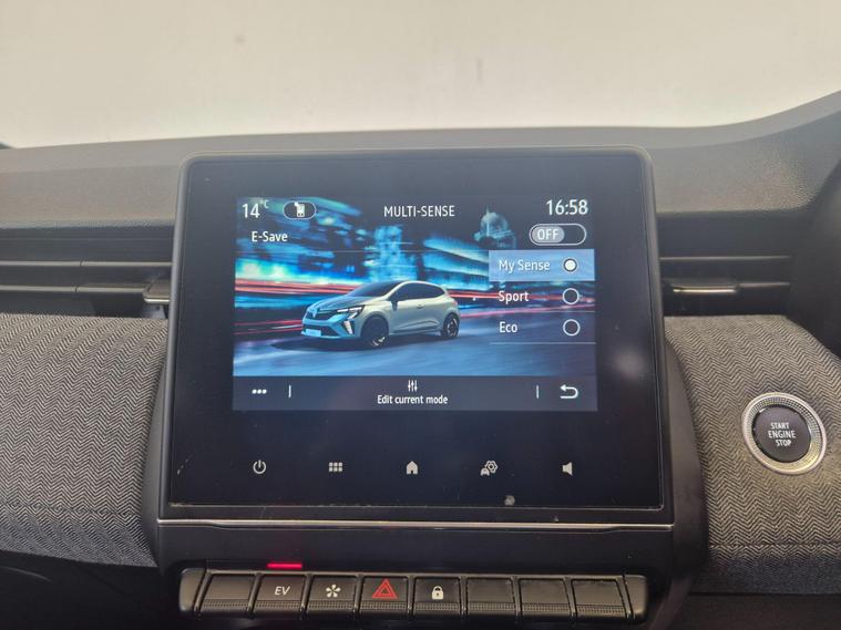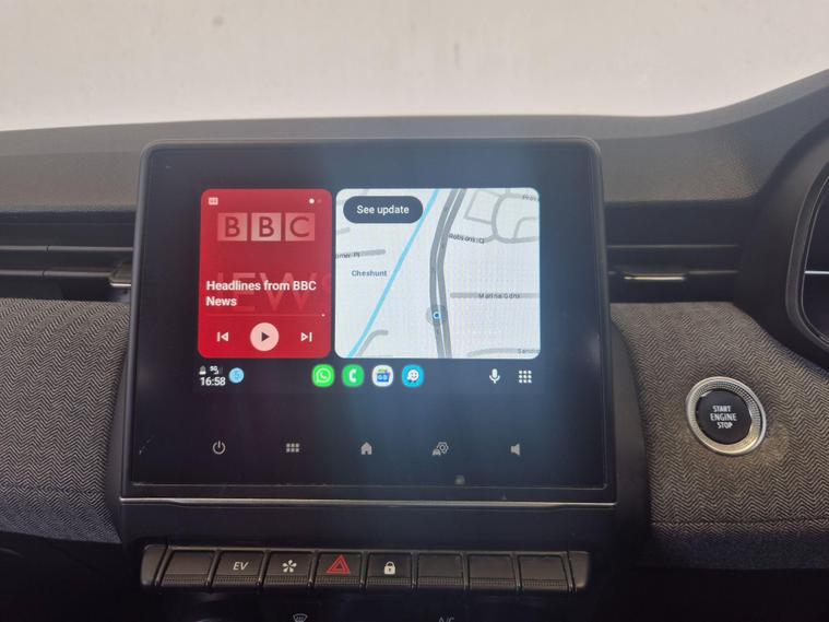 ULEZ COMPLIANT|PETROL HYBRID| AUTOMATIC | 2X KEYS |TECHNO |KEYLESS ENTRY | PARKING SENSORS | REVERSE CAMERA | ELECTRIC MIRRORS | CRUISE CONTROL | SPEED LIMITER | VOICE COMMAND | AUTO WIPERS | AUTO HEADLIGHTS | NAVIGATION | AC | AUX | USB | RADIO FM, AM, DAB | BLUETOOTH | APPLE CAR PLAY | ANDROID AUTO | DRIVE MODE OPTION MY SENSE, SPORT, ECO | HPI CLEAR |FREE AA BREAKDOWN COVER WITH ALL PURCHASES|FINANCE & WARRANTY AVAILABLE|DELIVERY AVAILABLE NATIONWIDE | £99 ADMIN FEEThis 2025 Renault Clio E-TECH Techno presents an exceptional ownership proposition with its remarkably low mileage of just 6000 miles, having had only one owner since new. This hybrid hatchback combines a 1.6 litre petrol engine with electric power, meeting Euro 6 emission standards. Inside, you'll find the Arkamys Audio System featuring 6 speakers, Bluetooth connectivity, and a branded sound system, alongside seamless smartphone integration via Apple CarPlay and Android Auto. Convenience is further enhanced by a wireless phone charger, an electrochromatic rear view mirror with automatic headlights activated by rain and light sensors, and a hands free keycard for keyless entry and push button start stop functionality. The Clio E-TECH Techno stands out with its impressive fuel economy, achieving a remarkable 66 miles per gallon, which indicates it is more economical than many similar vehicles. Its low CO2 emissions and low insurance group also contribute to lower running costs, making it a sensible choice. For those interested in performance, this model accelerates from 0 to 62 miles per hour in a brisk 9.3 seconds, demonstrating a good balance of efficiency and responsiveness..