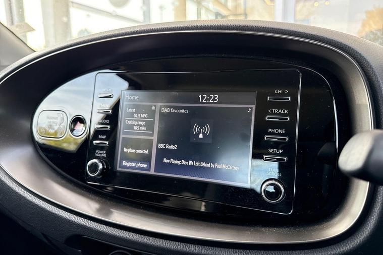 This 2024 Toyota Aygo X VVT-i Pure is a superb example, having had only one owner since new. This stylish hatchback features a responsive 1.0L Petrol Engine, meeting Euro 6 emission standards. Inside, you'll find convenient Smartphone Integration with Apple CarPlay and Android Auto, allowing seamless connection to your devices. Bluetooth Connectivity is also included for hands-free calls and audio streaming. For added ease and safety, the Aygo X is equipped with Auto Headlights and Toyota Safety Sense, which includes Intelligent Adaptive Cruise Control, all managed conveniently via the steering wheel.The Aygo X Pure stands out with its impressive fuel economy, achieving a remarkable 59 mpg, which indicates it is more economical than many similar vehicles. Furthermore, its low insurance group rating suggests that running costs will be kept to a minimum. The low CO2 emissions also highlight its efficiency and environmental consideration compared to other cars in its class. This combination of low running costs, advanced technology, and single owner provenance makes this Aygo X a very attractive proposition..