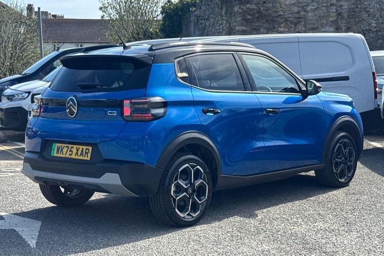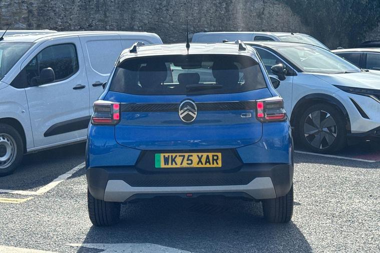 This 2025 Citroen e C3 Standard Range MAX is a truly exceptional find, boasting an incredibly low mileage of just 1792 miles and having had only one owner since new. This electric hatchback, presented in the MAX trim, offers a generous 44 kWh battery with a maximum range of 201 miles when new. Convenience is key with this model, featuring automatic headlights, rear parking sensors, and LED headlights with electric levelling. Inside, you'll appreciate the automatic air conditioning and the ease of wireless smartphone charging, ensuring a comfortable and connected driving experience.The Citroen e C3 MAX is designed for modern life, with a full charge at home using a 7kW charger taking approximately 5 hours and 33 minutes. For quicker top ups, it can reach 80% charge from empty in just 34 minutes at a compatible public charging station. These charging times, combined with its impressive range and low mileage, highlight how this particular vehicle offers a superior ownership proposition compared to other similar electric cars on the market..