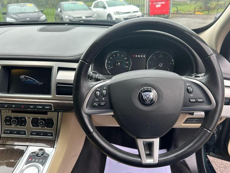 This Jaguar XF d Luxury from 2015 boasts a single owner from new, offering a well cared for example of this executive saloon. Powered by a responsive 2.2 litre diesel engine, this automatic transmission model delivers an impressive 0-60mph time of just 8.2 seconds. The Luxury trim level ensures a refined driving experience, complemented by notable features such as Xenon headlights with LED signature lights and daytime running lights, ensuring excellent visibility. Stay connected on the go with Bluetooth telephone connectivity, and enjoy consistent comfort thanks to the dual zone automatic climate control.The generous boot space provides ample room for luggage or shopping, making this XF a practical choice for both business and leisure. The inclusion of a 3 month warranty offers added peace of mind for your purchase. These carefully selected features and the vehicle's excellent provenance demonstrate its superior quality and desirability compared to other similar models on the market..