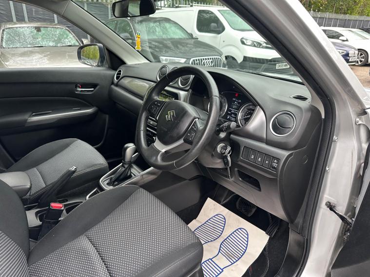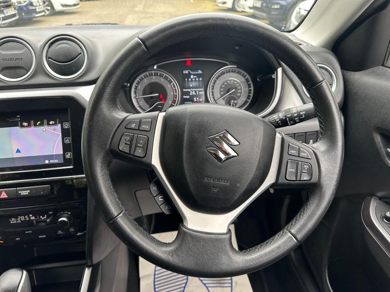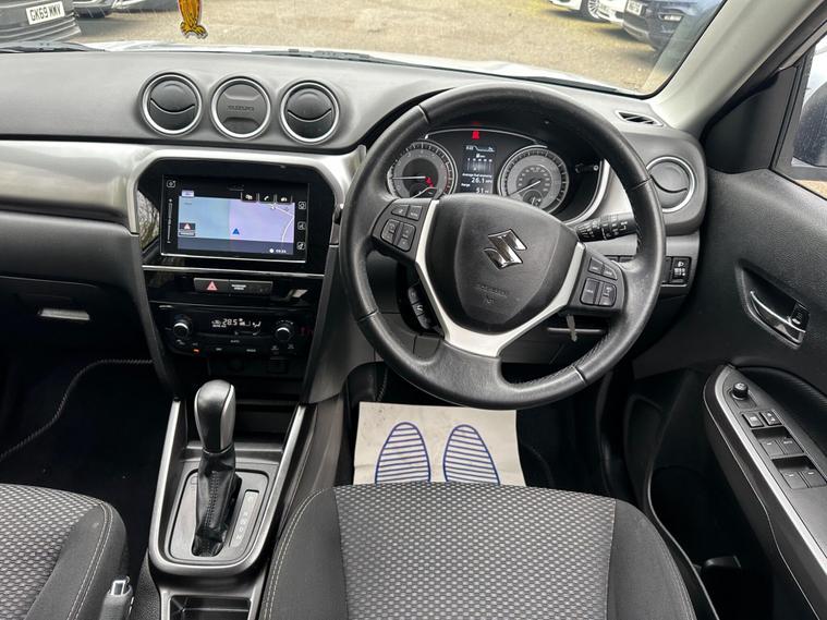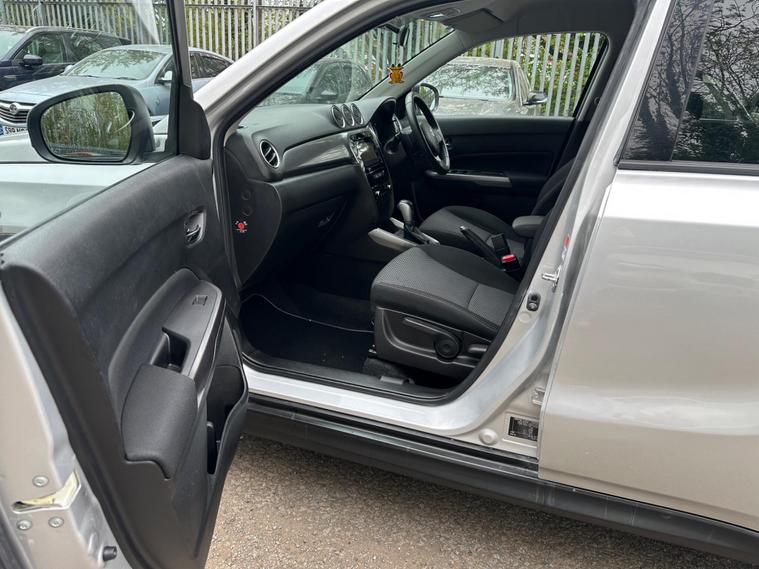 SILVER , SERVICE HISTORY, FINANCE AVAILABLE, NAVIGATION SYSTEM, SPARE KEY, ONLY TWO FORMER KEEPER, PARKING CAMERA, HEATED SEATS, START/STOP, CRUISE CONTROL, ULEZ COMPLIANTSUPERB DRIVE, VERY ECONOMICAL, ALLOY WHEELS, CLIMATE CONTROL, VERY WELL LOOKED AFTERThis 2019 Suzuki Vitara SZ-T boasts a clear vehicle history, offering you peace of mind. Powered by a responsive 1.4 litre petrol engine, this Euro 6 compliant model combines efficiency with performance. Inside, you'll find comfort and convenience with automatic air conditioning, including climate control, and seamless Bluetooth connectivity for your devices. Manoeuvring is made easier thanks to the integrated rear parking camera, providing valuable parking assistance.The Suzuki Vitara SZ-T stands out with its impressive acceleration, reaching 0 to 62 miles per hour in just 9.5 seconds, demonstrating its spirited performance. Furthermore, its low CO2 emissions highlight its consideration for the environment, making it a more economical choice compared to many other vehicles in its class..