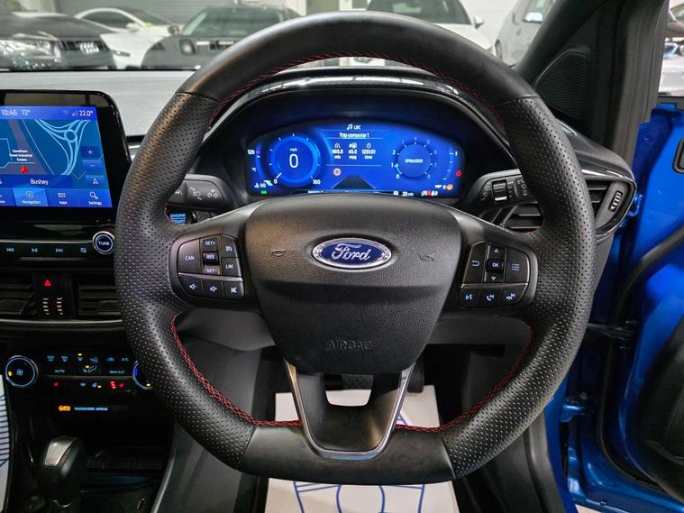 HPI Clear, Excellent condition, 1 Owner From New, Navigation system, B&O Premium Audio System and Ford SYNC 3 Navigation, Wireless Charging Pad with Electronic Air Temperature Control EATC, 6-Way Manual Driver Seat with Lumbar Adjustment, 6-Way Manual Passenger Seat with Lumbar Adjustment, Part Leather Seats, Heated seats, ABS - Anti-lock Braking System, Acoustic Laminated Windscreen, Automatic Dimming Rear View Mirror, Automatic Headlights with Rain-Sensing Wipers and Auto High Beam, Carbon-Look Interior Deco Spears, Multi-function steering wheel, Centre Console - Premium with Openable Stowage Area with USB Connectivity - 2 Cupholders and 12v Power Point, Chrome Dual Exhaust Pipe, Courtesy Lights - Ambient LED Courtesy Lighting - Single Colour, Cruise Control with Intelligent Speed Assist, ESC - Electronic Stability Control and Hill Start Assist, Ecoboost Hybrid Tailgate Badge, Electric Windows - Front and Rear, Electronic Air Temperature Control - EATC, Emergency Brake Warning - Automatic Hazard Warning Lights, Engine Sound Enhancer, First Aid Kit Strap, Fixed LED Signature Headlamps, Ford KeyFree System, Ford MegaBox Extended Bootspace, Ford Power Starter Button, Front Bumper - Unique ST Design - Body Colour, Front Fog Lights, Front Parking Sensors, Full Digital 12.3in Instrument Cluster, Lower Bodyside Moulding - Painted Accents - Painted Door Spears in High Gloss Black, Post Collision Braking, ST Badge, ST Flat Bottom Steering Wheel with Metal Grey Stitching, Tailgate - Manual, Traction Control and Emergency Braking Assistance, Trip-Fuel Computer, Unique ST Elements to Front and Rear Body Styling Kit, Unique ST Gear Shift Knob, Unique ST Scuff Plates, Winter Pack, Thatcham Alarm, Alloy Sports Pedals, Tyre Inflation Kit, Folding Mirrors, Fog lights, Xenon light, Bluetooth, Tyre Pressure Monitoring System - TPMS, 19in Alloy Wheels - 5-Spoke - Magnetite Dark Finish, , 17in Alloy Wheels - 10-Spoke -.