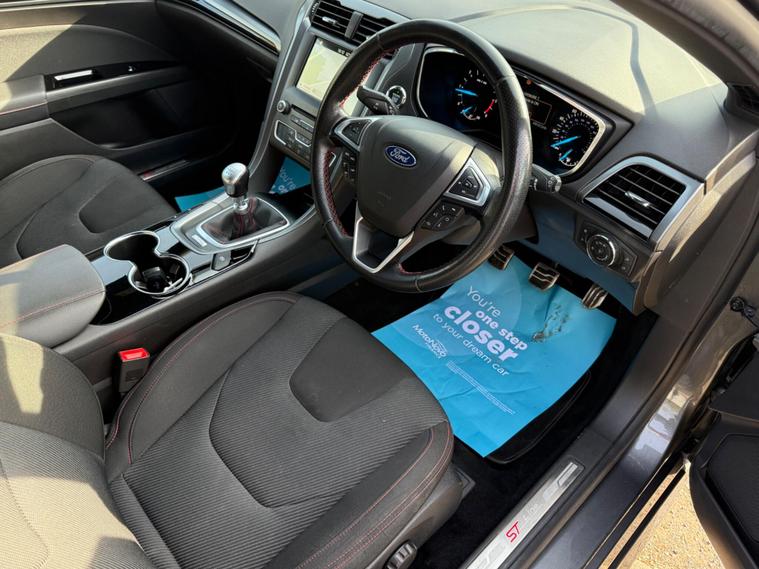 This 2019 Ford Mondeo TDCi ST-Line presents an exceptional ownership proposition with its full service history and remarkably low mileage for its age, having covered just 49, 518 miles. This Euro 6 compliant model boasts a powerful 2.0L diesel engine and benefits from a recent service on 11 February 2026 at 49, 386 miles. The ST-Line trim ensures a sporty aesthetic and includes desirable features such as front and rear parking sensors with parking assistance, dual zone electronic automatic air conditioning, and a SYNC 3 system with an 8in colour touchscreen, Bluetooth, voice control, and USB connectivity.The Mondeo TDCi ST-Line offers a compelling driving experience, highlighted by its brisk 0-62mph acceleration in just 8.3 seconds, demonstrating its performance capabilities. This vehicle stands out from others in its class due to its thoughtful features, including rear compartment manual air conditioning for passenger comfort and rear privacy glass for added seclusion. Furthermore, the generous boot space makes it a practical choice for families and those needing ample storage..