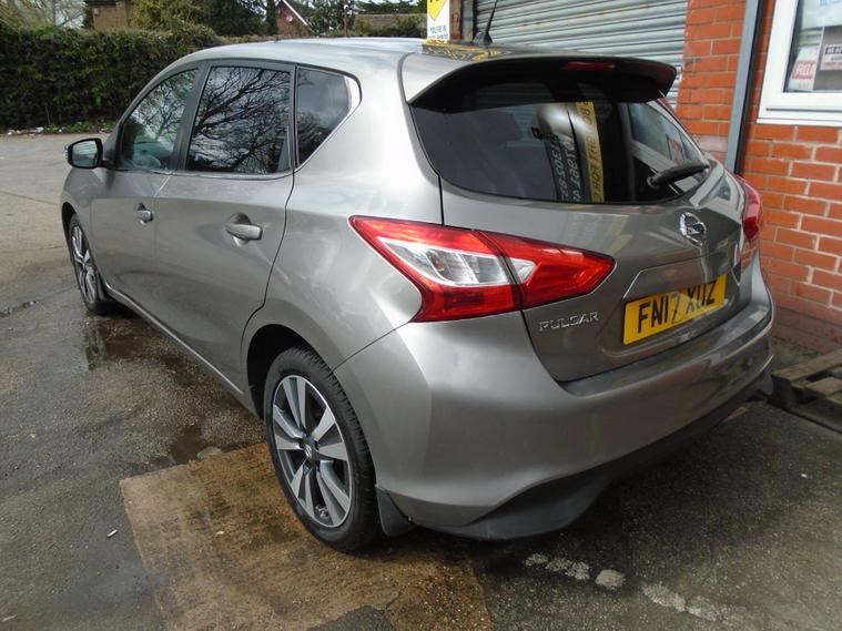 NISSAN PULSAR 1.2 DIG-T N-CONNECTA 5 DOOR EURO 6.ONE PREVIOUS OWNER FROM NEW IN METALLIC GREY WITH CONTRASTING BLACK HALF LEATHER INTERIOR, VERY ECONOMICAL FAMILY HATCHBACK WITH LOW LOW MILES £35 A YEAR ROAD TAX GROUP 9E INSURANCE AND 65MPG.GREAT SPEC INCLUDED WITH SAT NAV, BLUETOOTH CONNECTIVITY, REAR PARKING CAMERA, CRUISE CONTROL, AIR CON, USB+AUX AND 17 INCH ALLOY WHEELS WITH TWO KEYS.MOT UNTIL APRIL 2027 AND FULL SERVICE HISTORY.12 MONTHS FREE AA BREAKDOWN COVER AND 18 MONTHS NATIONWIDE WARRANTY INCLUDED IN PRICE.FINANCE AVAILABLE P/X WELCOME..