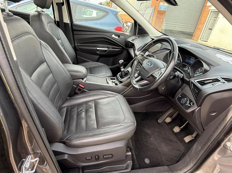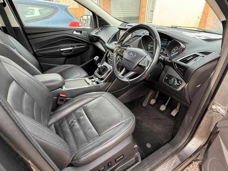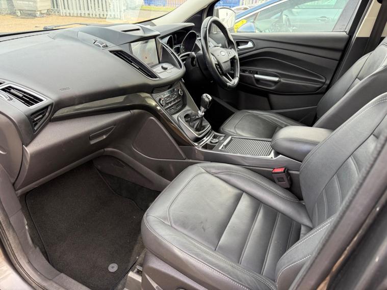 This 2017 Ford Kuga TDCi Titanium X offers an exceptional blend of style and practicality, boasting a powerful 2.0L Diesel engine and Four Wheel Drive capability for confident handling in various conditions. As a Euro 6 compliant vehicle, it meets modern emissions standards. The Titanium X trim level ensures a premium experience, featuring a striking Power Opening Panoramic Roof that floods the cabin with light, and Bi-Xenon Headlights with Dynamic Bending Adaptive Beam Shape for enhanced visibility. Inside, you'll find the Ford DAB Navigation System with Ford SYNC3, offering seamless connectivity via Bluetooth, alongside DEATC Dual-Zone Electronic Automatic Temperature Control for personalised comfort. Both the driver and passenger seats are heated, providing warmth on colder journeys.This Kuga stands out with its impressive fuel economy, achieving a remarkable 54 mpg, which indicates it is more economical than many similar vehicles. Its low CO2 emissions further highlight its efficiency and environmental consideration. The combination of its robust performance, advanced technology, and comfort features makes this Ford Kuga TDCi Titanium X a compelling choice for those seeking a versatile and well-equipped SUV..
