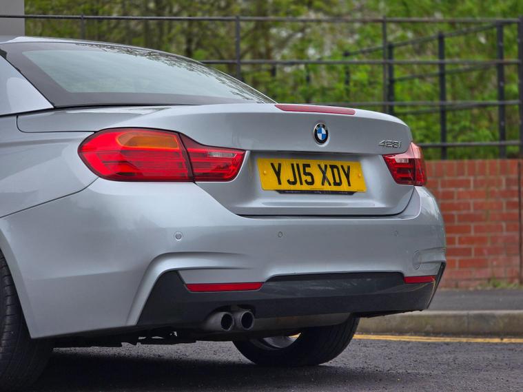 This 2015 BMW 4 Series 428i M Sport is a Euro 6 compliant vehicle, offering a blend of performance and premium features. Finished in the desirable M Sport trim, this model boasts the M Sport Design Package, enhancing its athletic appearance. It sits on striking 19 inch M Double Spoke Style 442M alloy wheels and features a tactile M Leather Gear Lever for a refined driving experience. For your comfort, the steering wheel is heated, and the cabin is equipped with a high quality Harman Kardon speaker system, providing an immersive audio experience.Under the bonnet, a responsive 2.0 litre petrol engine powers this BMW 4 Series. Its performance is highlighted by an impressive 0 to 62mph acceleration time of just 6.4 seconds, demonstrating its dynamic capabilities. These specifications indicate a superior driving experience compared to many other vehicles in its class, offering both exhilarating speed and sophisticated comfort for every journey..