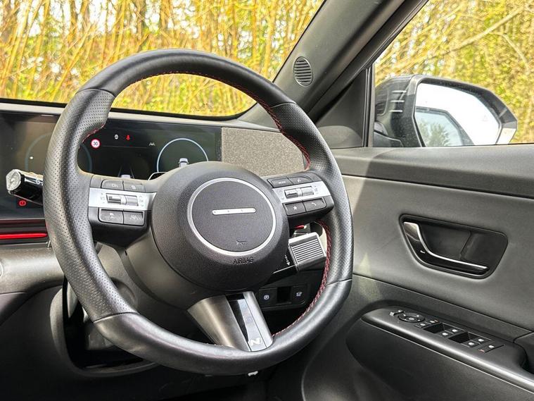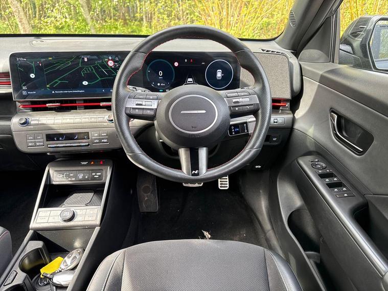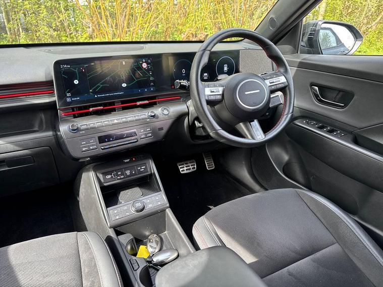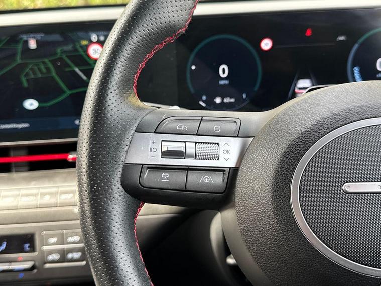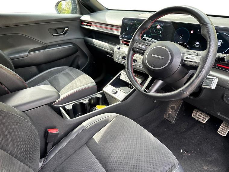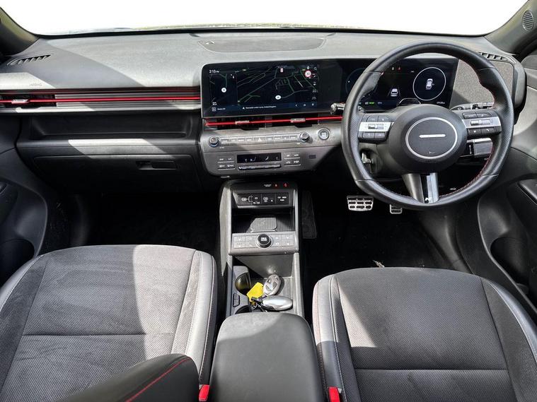 This 2024 Hyundai KONA h GDi N Line S is a superb example, having had only one owner since new. This stylish SUV boasts a 1.6 litre petrol hybrid engine, meeting Euro 6 emission standards. It comes equipped with a Smart Key for keyless entry and push button start, along with a rear camera and guidance system to assist with parking. Automatic headlights with a dusk sensor ensure visibility is always optimal, while Smart Cruise Control with a stop and go function adapts to traffic conditions. Front and rear parking sensors further enhance manoeuvrability and safety.The Hyundai KONA h GDi N Line S offers excellent efficiency, achieving an impressive 60 miles per gallon, which indicates it is more economical than many similar vehicles. Its low CO2 emissions also mean it is kinder to the environment. Furthermore, this model falls into a low insurance group, suggesting that running costs will be more affordable compared to other cars in its class..