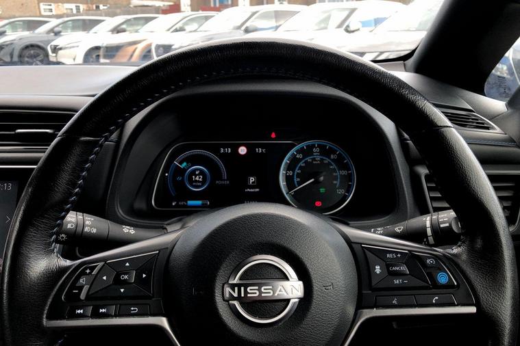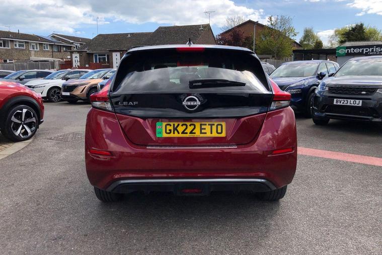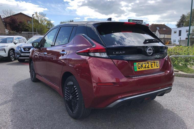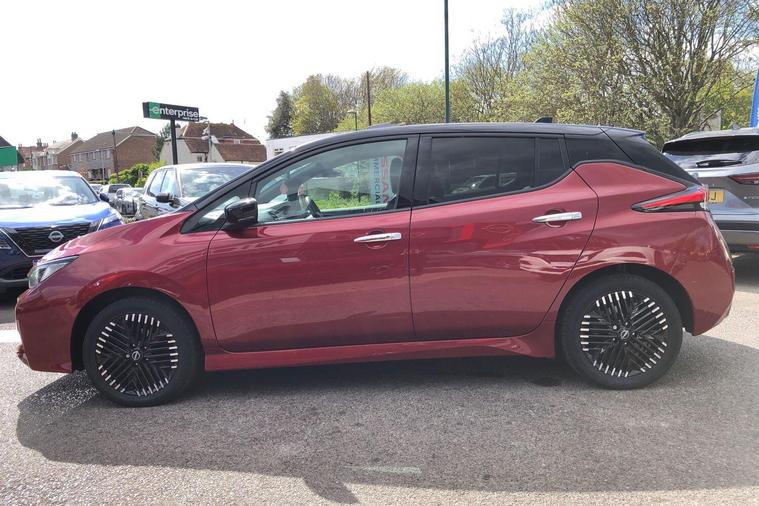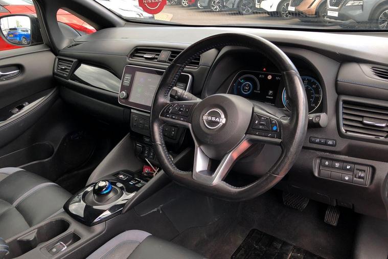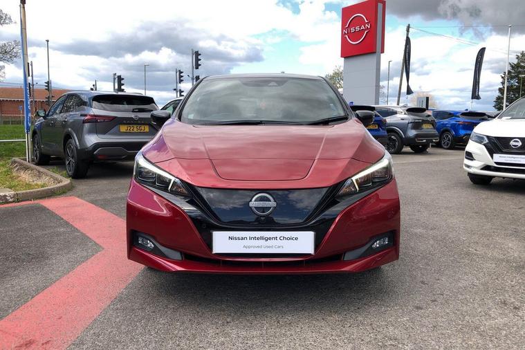 This 2022 Nissan Leaf e+ Tekna is a Nissan manufacturer approved electric vehicle, offering a compelling blend of advanced technology and practicality. With a substantial 61 kWh battery, this Leaf provides a maximum range of 239 miles when new, ensuring you can travel further on a single charge. Charging at home on a 7kW charger takes approximately 11 hours for a full charge, while rapid public charging can take you from empty to 80% in just 2 hours. This model also comes equipped with notable features such as Blind Spot Intervention, which includes Blind Spot Assistance, and Intelligent Auto Headlights that activate automatically.The Nissan Leaf e+ Tekna stands out with its impressive performance, accelerating from 0 to 62mph in a swift 6.9 seconds, demonstrating its dynamic capability. The large boot space offers excellent practicality for everyday needs and longer journeys. These highlights indicate that this Nissan Leaf e+ Tekna offers a superior driving experience and greater utility compared to other vehicles in its class..