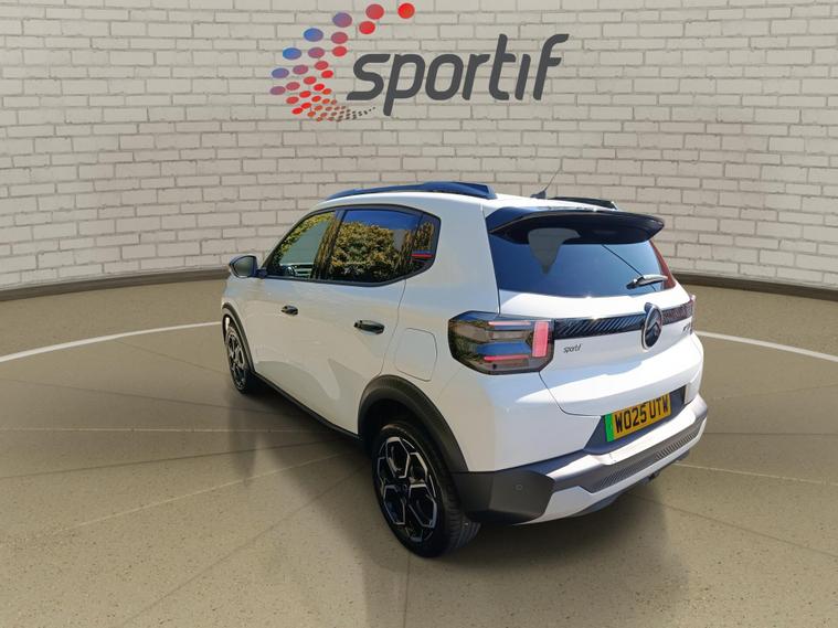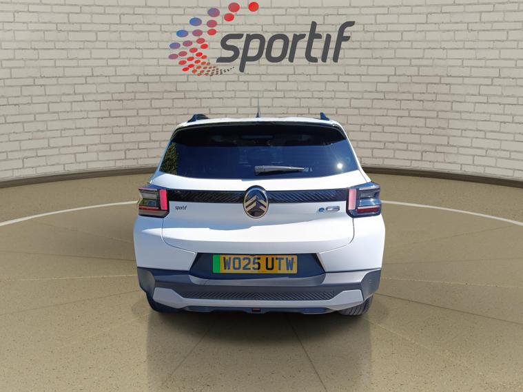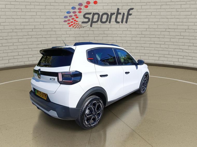 This 2025 Citroen e C3 Standard Range MAX is a truly exceptional example, boasting incredibly low mileage for its age, having covered just 419 miles. As a Citroen manufacturer approved vehicle with a clear history check and a full service history, this electric hatchback offers peace of mind. It features a 44 kWh battery providing a maximum range of 201 miles, and can be fully charged at home in approximately 5 hours and 33 minutes using a 7kW charger. For faster top ups, it can reach 80% charge in just 34 minutes at a compatible public charging station. The vehicle comes with a 12 month warranty and a 12 month MOT provided on purchase.The MAX trim level enhances your driving experience with a heated leather effect steering wheel featuring gloss black and chrome elements, along with integrated audio, telephone, cruise control, and speed limit controls. Stay informed with the Citroen Head Up Display, which projects key driver information onto the upper dashboard. Convenience is key with wireless smartphone charging and rear parking sensors for easier manoeuvring. The Citroen Connect Nav system includes DAB digital radio, six loudspeakers, a 10.25 inch capacitive touchscreen, and wireless Mirror Screen functionality with Apple CarPlay and Android Auto, plus Bluetooth connectivity. This e C3 offers a refined and technologically advanced electric driving experience, setting it apart from other vehicles in its class..