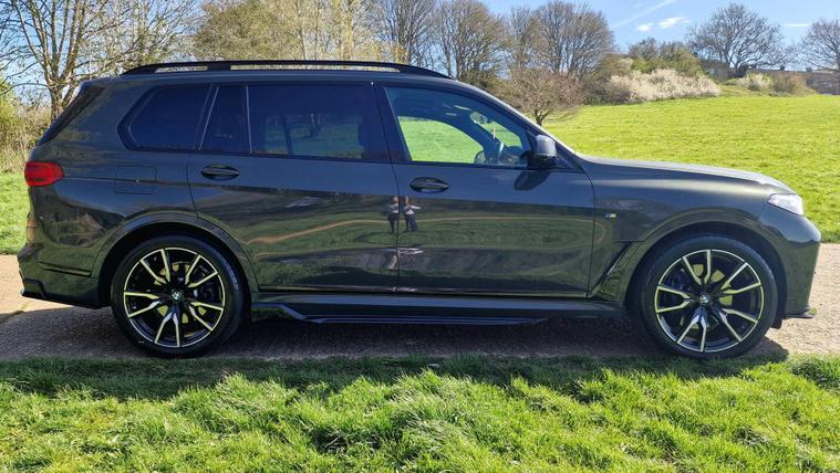 This 2021 BMW X7 40d M Sport boasts a clear vehicle history and an MOT valid until October 2026, offering peace of mind for its next owner. This impressive seven seat SUV features a powerful 3.0L Diesel Hybrid engine paired with Four Wheel Drive, ensuring excellent performance and capability. The M Sport trim and M Sport Pro Package deliver a dynamic driving experience, further enhanced by the sophisticated Laserlights and the expansive Sky Lounge Panoramic Glass Sunroof. Practicality is also a key consideration, with a useful towbar and ample boot space for all your needs.The X7 40d M Sport stands out with its remarkable acceleration, reaching 0-62mph in just 6.1 seconds, a testament to its potent powertrain. This performance, combined with its Euro 6 emission class and a substantial towing weight of 2200 kg, positions it as a superior choice for those seeking a blend of power, efficiency, and versatility. The inclusion of the Travel and Comfort System adds further convenience, making this BMW X7 a truly well equipped and capable vehicle..