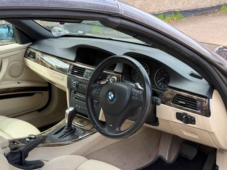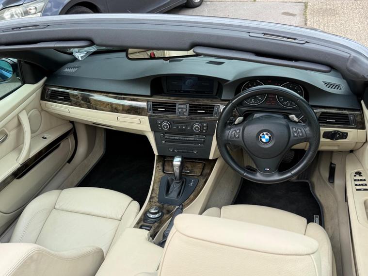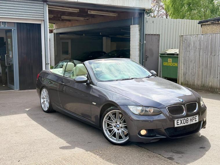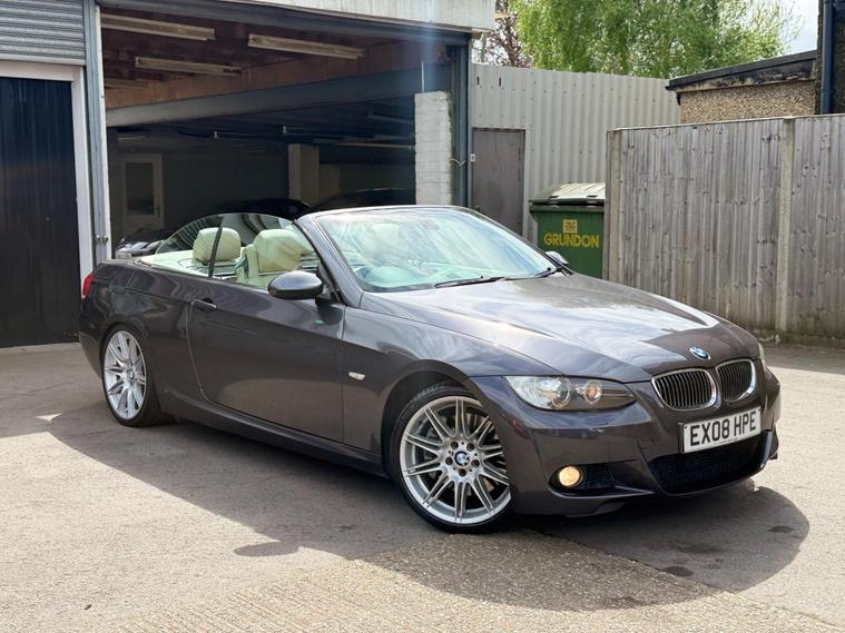 This 2008 BMW 3 Series 335i M Sport is a remarkable find, having been cherished by just one owner from new with a clear vehicle history check. A very rare find with fully functional features of covertible roof + Leather Heated Seats + Sat Nav and many more options.. the owner upgraded to a larger car so this has to to go.. A fresh MOT will be carried out along with all avisory work from previous MOT + A fresh service + 6 months FREE WARANTY.. This particular model boasts the desirable M Sport trim and is powered by a potent 3.0L petrol engine, delivering an impressive 0-62mph in just 6.0 seconds. It comes equipped with a suite of premium features, including 19in Light alloy double Spoke Wheels Style 225 M, SatNav Professional for effortless navigation, and Front & Rear Parking Distance Control with a front camera to aid manoeuvring. Inside, you'll appreciate the comfort of Heated Front Seats and the convenience of a USB & Audio interface.The appeal of this 335i M Sport is further enhanced by its low insurance group, making it a more economical choice than many comparable vehicles. The combination of its exhilarating acceleration, sophisticated M Sport styling, and the comprehensive list of factory fitted options clearly sets this BMW apart. This is a well maintained example that offers a compelling blend of performance, luxury, and practicality.We offer | 6 Months FREE WARRANTY | Part Exchange | UK wide Delivery | Accepts Credit/debit Cards (t&c applied) | If you want any additional information, please contact us. For more stock please visit our website dealer's website