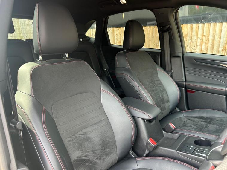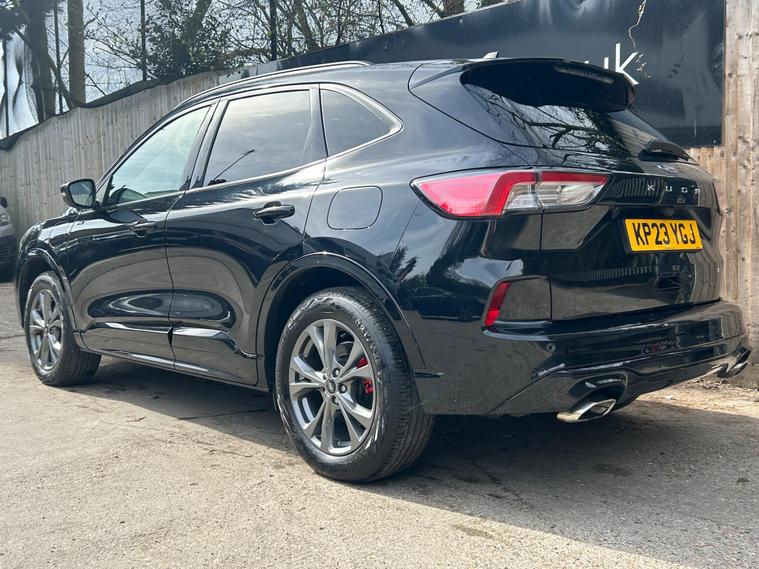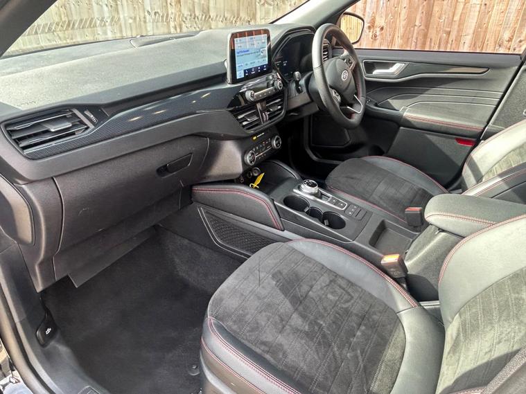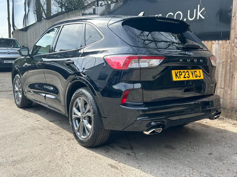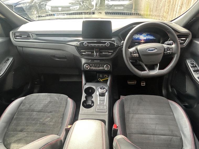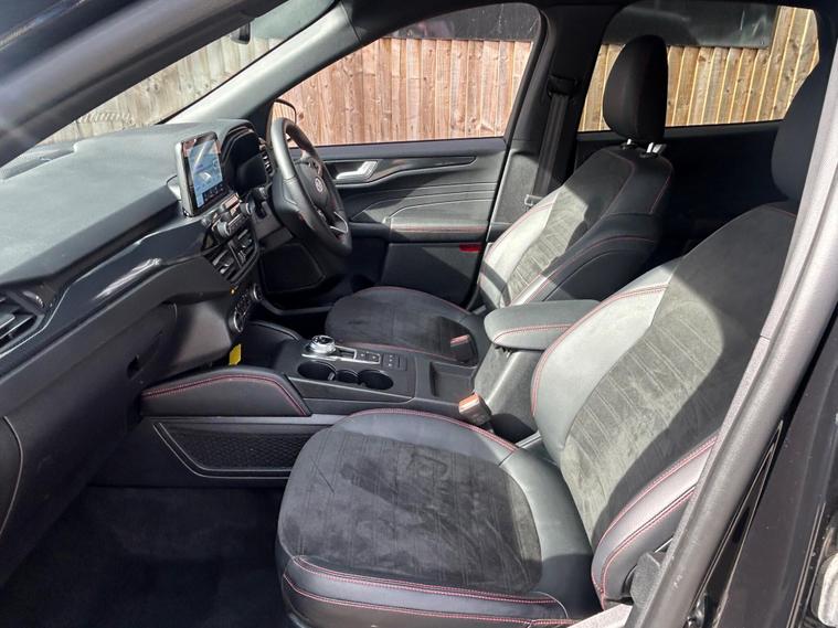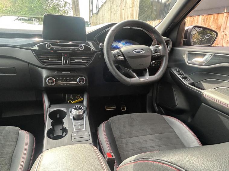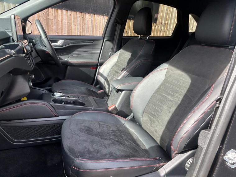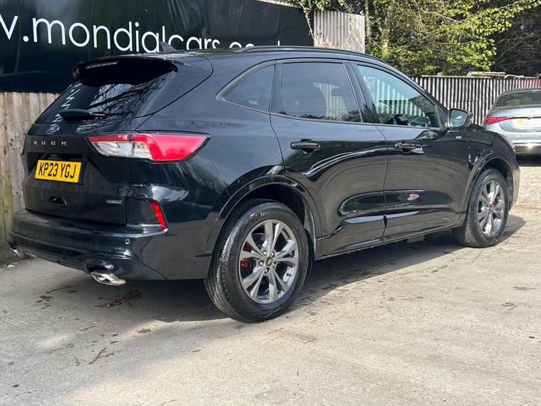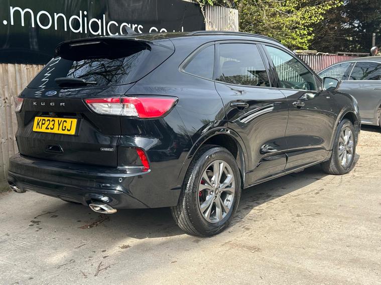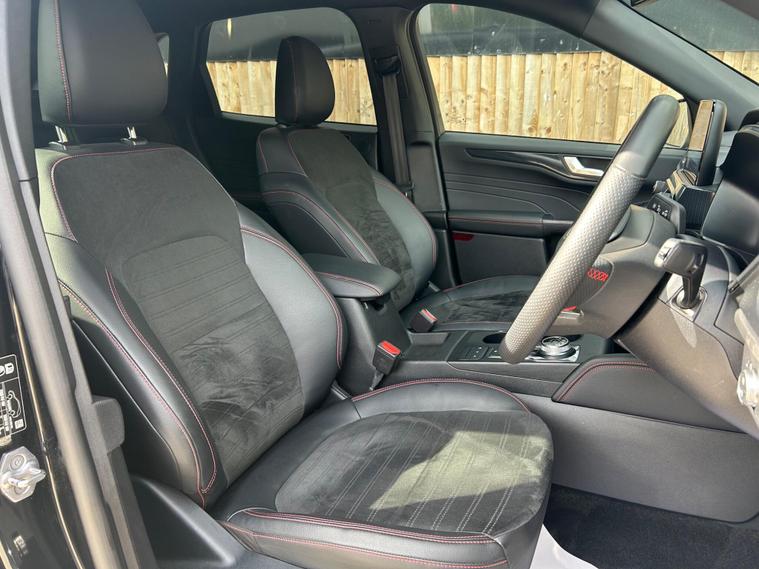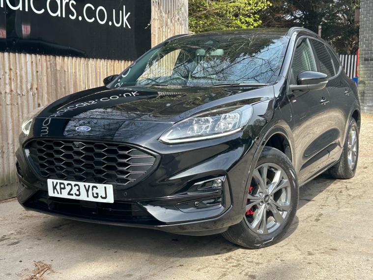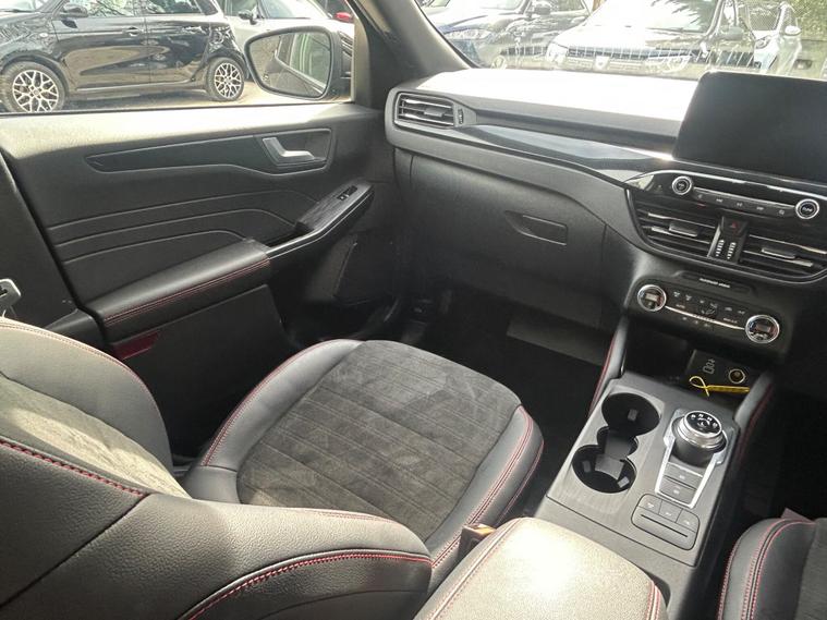 This 2023 Ford Kuga ST Line offers an exceptional blend of efficiency and technology, featuring a 2.5 litre petrol plug in hybrid engine. As a Euro 6 compliant vehicle, it meets stringent emission standards. This ST Line trim comes equipped with the Ford SYNC 3 Navigation System, seamlessly integrating Android Auto, Apple CarPlay, and Bluetooth connectivity. Convenience is further enhanced by wireless charging for your devices and automatic headlights that adjust to ambient light conditions. The Ford Key Free System allows for effortless keyless entry and start, while front and rear parking sensors provide added assistance when manoeuvring.The Kuga ST Line is designed to provide a superior driving experience compared to other vehicles in its class. Its plug in hybrid powertrain offers a more economical and environmentally conscious way to travel, reducing both fuel costs and emissions. The advanced SYNC 3 system ensures you stay connected and entertained on every journey, with intuitive access to navigation, music, and calls. Furthermore, the inclusion of keyless entry and start, along with parking sensors, simplifies everyday use, making this Ford Kuga a practical and sophisticated choice for any driver..