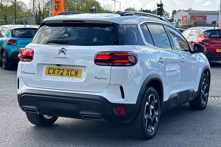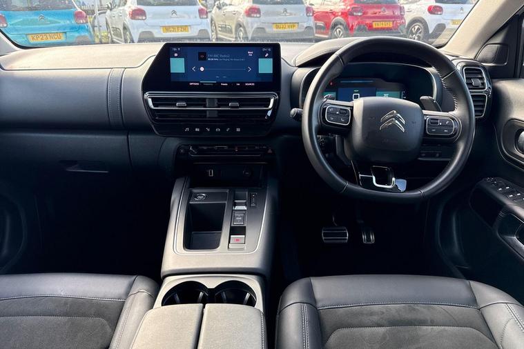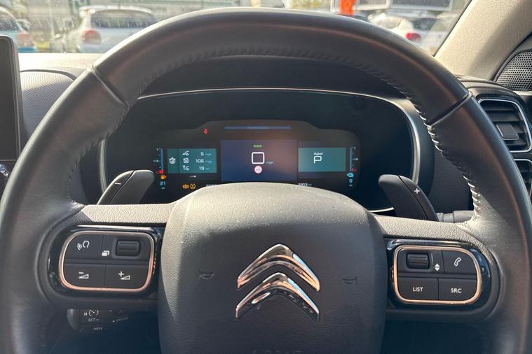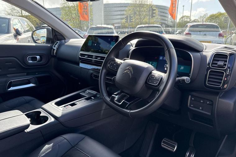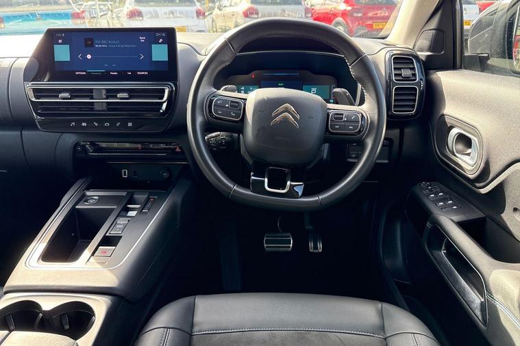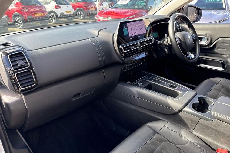 This 2023 Citroen C5 Aircross Shine is a Citroen manufacturer approved vehicle with a full service history and only one owner, offering excellent peace of mind. It features a 1.6L Petrol Plug-in Hybrid engine, meeting Euro 6 emission standards, and has covered a low mileage of 24, 000 miles for its age. The Shine trim level comes equipped with a 10in touchscreen user interface with Bluetooth, keyless entry and start, and electric heated folding door mirrors with LED approach lighting and blind spot monitoring indicators. The Drive Assist Pack enhances safety and convenience, including adaptive cruise control and blind spot assistance, while automatic headlights with welcome and goodbye lighting add a touch of sophistication.The generous boot space in this C5 Aircross makes it a practical choice for families and those needing ample storage. The combination of its plug in hybrid technology, low mileage, and comprehensive provenance, including a 12 month warranty, sets this vehicle apart from others. The advanced features like the adaptive cruise control and blind spot monitoring further highlight its superior comfort and safety, making it a compelling option for discerning buyers..