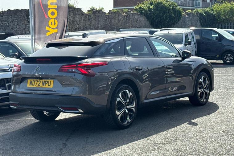 This 2023 Citroen C5 X Shine Plus presents a compelling blend of style and practicality, offering a refined driving experience. Powered by a 1.2 litre Euro 6 petrol engine, this automatic transmission model is designed for efficiency and smooth performance. The Shine Plus trim level ensures a wealth of desirable features, including automatic illumination of headlamps when unlocking, electrically adjustable heated and folding door mirrors with blind spot assistance, and an acoustic insulated tinted windscreen incorporating an impressive head up display. Inside, you'll find inductive wireless smartphone charging for effortless connectivity and electrically heated front seats for enhanced comfort during your journeys.The Citroen C5 X Shine Plus excels with its generous boot space, providing ample room for all your luggage and shopping needs. Its acceleration from 0 to 62 miles per hour in 10.4 seconds demonstrates a capable performance that stands out amongst its peers. These highlights, combined with its sophisticated features and comfortable interior, position the C5 X Shine Plus as a distinguished choice for those seeking a versatile and well equipped vehicle..