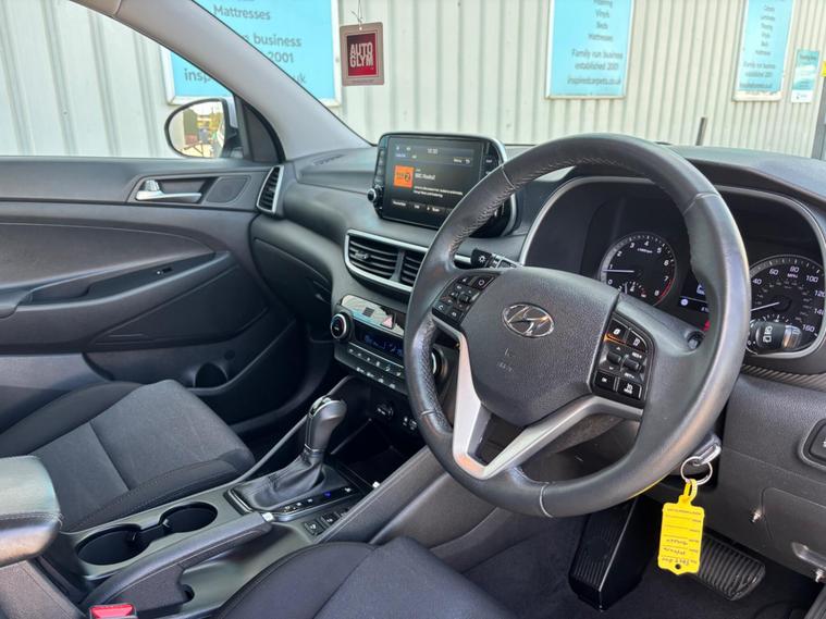 Ultra-Low Mileage: 8, 087 Miles | 6 Service Stamps | Petrol AutomaticWe are pleased to offer this highly desirable, high-specification, and totally unique Hyundai Tucson 1.6 T-GDi SE Nav. This rare petrol automatic is finished in the best colour—Platinum Silver Metallic—and is complemented by Oceanids Black cloth upholstery. With such exceptionally low mileage, this is a truly one-off example.Vehicle OverviewMileage: A mere 8, 087 miles from new.Ownership: Same family owned since July 2023.Condition: Excellent condition throughout; drives superbly with 177 BHP.Build Quality: Renowned Hyundai reliability and build quality.Outstanding Service HistoryDespite the ultra-low mileage, this vehicle has been meticulously maintained with six services carried out at the following intervals:1, 173 | 1, 913 | 2, 655 | 5, 111 | 6, 771 | 8, 087 miles.Documentation: Stamped service book, original handbook pack, and 2 keys included.SE Nav SpecificationA comprehensive equipment list for comfort and convenience:Tech & Navigation: Satellite Navigation and full Media Package.Parking Aids: Rear parking sensors with a high-definition reversing dealer's website Cruise control and a multi-function steering wheel.Styling: 17'' five-spoke alloy wheels and tinted privacy glass.Convenience: Full electric pack and much more.Added ValueHPI clear with certificate.Six months nationwide warranty included.Any trial or inspection is welcomed.Viewing is essential to appreciate this truly cherished, low-mileage example of this popular automatic SUV.About UsWe have been established in Baildon for over 20 years. All our vehicles are fully inspected, prepared, and valeted.Finance: We are finance specialists.Part Exchange: Welcome.Payments: All major credit and debit cards accepted.Opening Times: Open 7 days a week.Postcode: BD17 7EX.