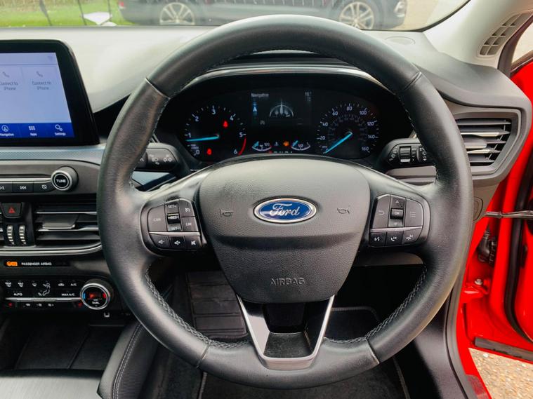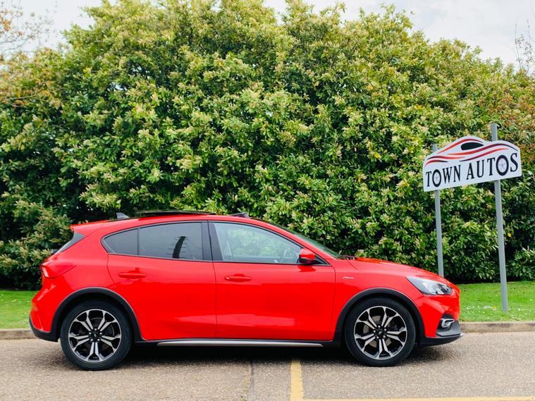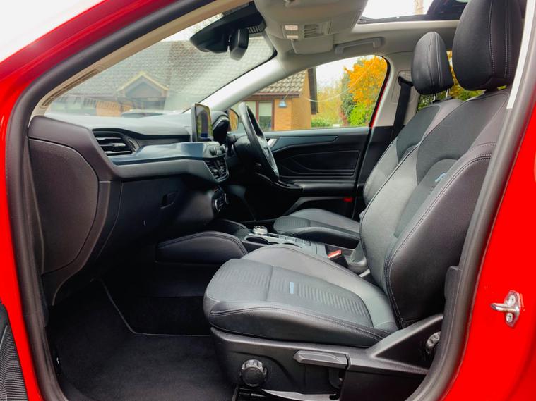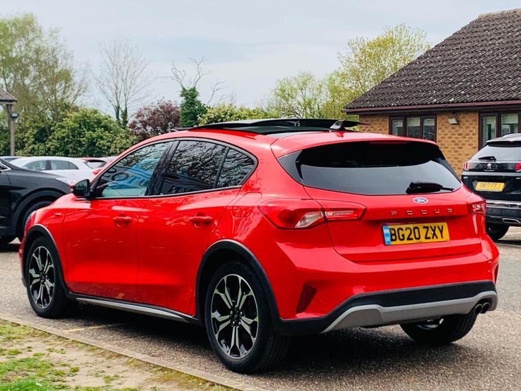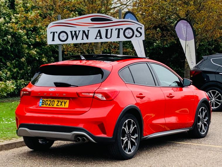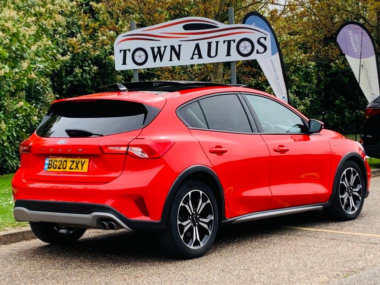 FULL SERVICE HISTORY, 05 SERVICES IN BOOK, 04 SERVICES BY FORD, PAN ROOF, MOT 26/10/2026, SPARE KEY, This 2020 Ford Focus Active X presents an exceptional opportunity with its remarkably low mileage of just 36, 000 miles for its age, coupled with a clear vehicle history check. This Euro 6 compliant 1.5L diesel model offers a refined driving experience, enhanced by features such as automatic on-off headlights and the convenience of the Ford Key Free System for keyless entry and start. Inside, you'll appreciate the DEATC dual-zone electronic automatic temperature control, ensuring comfort for all occupants, and the luxury of heated front seats. The Active X trim level is further distinguished by its openable panoramic roof, adding an airy feel to the cabin. Beyond its impressive features, this Focus boasts a large boot space, making it incredibly practical for everyday use, shopping trips, or holidays. These elements combined, particularly the low mileage and desirable features, position this Ford Focus Active X as a standout choice compared to other vehicles in its class..