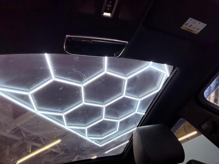 - Textured aluminium centre console finisher and textured aluminium IP finisher