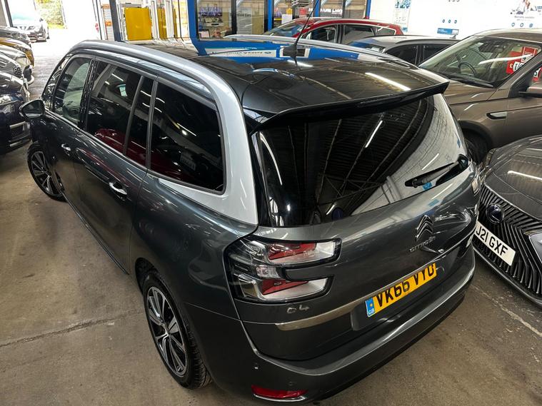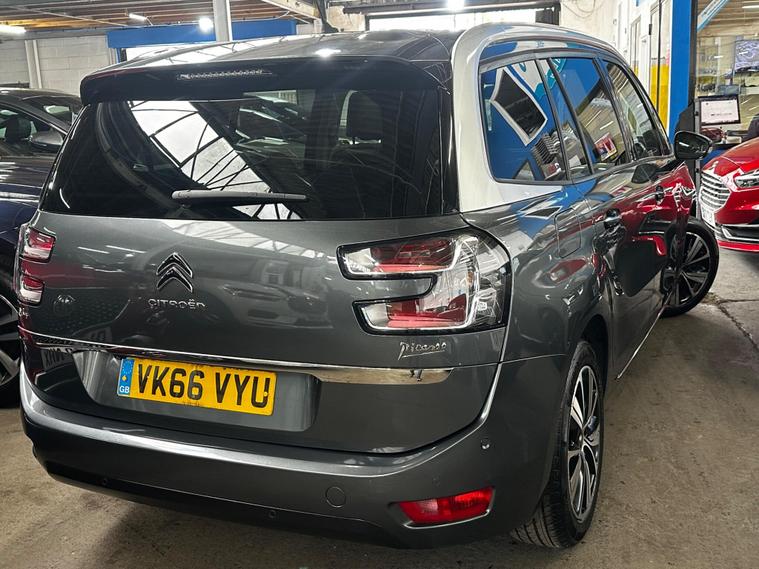Boasting an impressively low mileage for its age, this 2016 Citroen Grand C4 Picasso Flair is a well maintained example. This 7 seat MPV is powered by a 1.2L petrol engine and meets Euro 6 emissions standards. It comes with a 3 month warranty for your peace of mind, and a 12 month MOT will be provided upon purchase, ensuring its roadworthiness. The vehicle history check is clear, and it was last serviced on 07 April 2026. Notable features include Blind Spot Detection with assistance, Keyless Entry and Start, a Reversing Camera with rear parking assistance, Front Parking Sensors, and automatic digital dual zone air conditioning for a comfortable climate.This Grand C4 Picasso offers excellent fuel economy, achieving a highlight of 55 mpg, which indicates it is more economical than many similar vehicles. Its low CO2 emissions are also a positive indicator of its efficiency. For performance, it accelerates from 0 to 62mph in 10.8 seconds, demonstrating a responsive driving experience. With only 57, 650 miles on the clock, this Flair model presents a compelling option for those seeking a practical and feature rich family car..