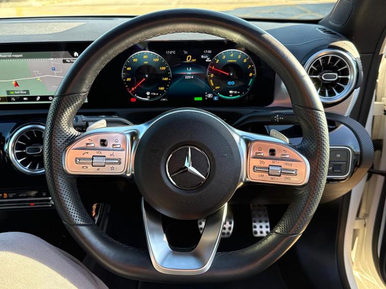 This 2022 Mercedes-Benz CLA250e AMG Line (Premium) boasts exceptionally low mileage for its age, having covered just 22, 514 miles. This Euro 6 compliant plug-in hybrid features a 1.3L petrol engine and comes with a 6 month warranty for your peace of mind. Its MOT is valid until October 2026, and it benefits from a full service history, with the last service completed on 2026-04-03 at 22, 513 miles. Notable features include an AC charging system rated at 7.4 kW, radar-based recuperation for efficient energy recovery, pre-entry climate control, acoustic ambient protection, and a convenient charging socket.The AMG Line trim enhances the sporty appeal of this Mercedes-Benz CLA, while the plug-in hybrid technology offers an efficient and refined driving experience. The inclusion of features like radar-based recuperation and pre-entry climate control demonstrates a higher level of technological integration compared to many other vehicles in its class. This combination of advanced features, excellent provenance, and the sophisticated Mercedes-Benz brand makes this CLA250e a compelling choice for those seeking a premium and forward-thinking vehicle..