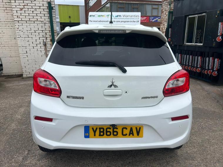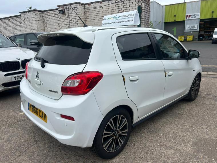 Discover this 2016 Mitsubishi Mirage Juro, a remarkably low mileage example for its age, having covered just 34, 700 miles. This Juro variant is powered by an efficient 1.2 litre petrol engine and meets Euro 6 emissions standards. It comes equipped with a convenient Keyless Operation System for effortless entry and starting, alongside Bluetooth connectivity for hands free calls and audio streaming. Driving is made easier with automatic headlights that activate when needed and rear parking sensors to assist with manoeuvring. The Juro trim also features striking Bi-Xenon HID headlamps for enhanced visibility.This Mitsubishi Mirage Juro offers excellent running costs, boasting an impressive fuel economy of up to 66 miles per gallon, which is a significant advantage over many other vehicles in its class. Its low CO2 emissions further contribute to its economical profile. These highlights demonstrate how this Mirage Juro provides a cost effective and practical motoring solution. On v car cat s..