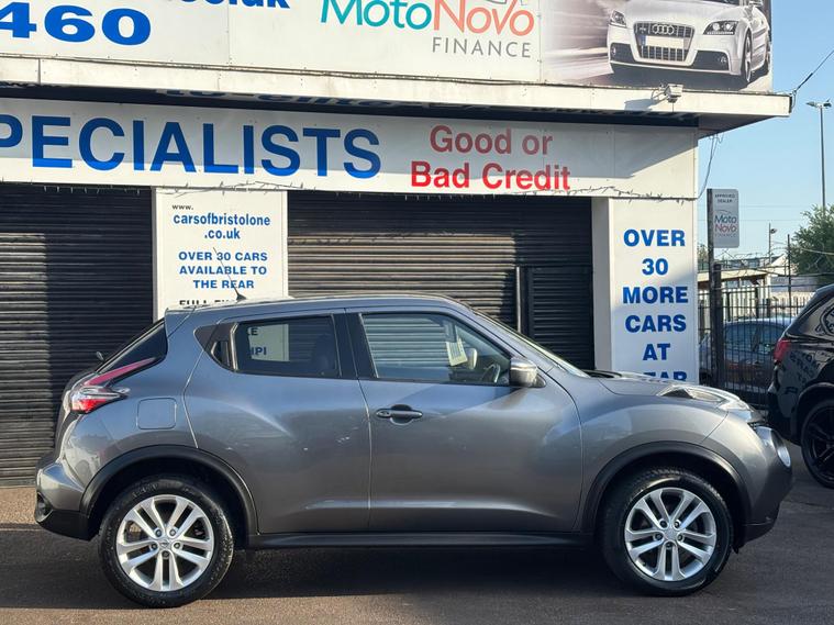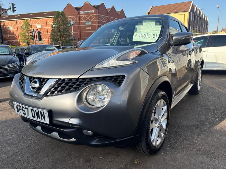 HERE WE HAVE ON SALE IS THIS FANTASTIC NISSAN JUKE 1.2 DIG-T N-CONNECTA FINISHED IN METALLIC GREY....................IT COMES WITH HALF LEATHER/HALF SUEDE SEATS, SATELLITE NAVIGATION, DAB RADIO/CD PLAYER, MULTI FUNCTION STEERING WHEEL, BLUETOOTH, SAT NAV, REVERSE CAMERA, DUAL CLIMATE CONTROL, SPEED LIMITER, PUSH TO START, ELECTRIC WINDOWS, AIR CONDITIONING, ELECTRIC POWER-FOLD MIRRORS, ALLOY WHEELS, AND REMOTE CENTRAL LOCKING X2 KEYS....................THIS VEHICLE BOASTS FULL SERVICE HISTORY CONSISTING FROM 11460 MILES, 35248 MILES, 40990 MILES. 47107 MILES AND 54732 MILES MEANING THIS VEHICLE HAS BEEN MAINTAINED TO A VERY HIGH STANDARD.............THIS VEHICLE WILL BE SERVICED AT POINT OF SALE...............ONE FORMER KEEPERS...........IT IS PRESENTED IN EXCELLENT CONDITION THROUGHOUT AND DRIVES LIKE WISE............................VIEWING ESSENTIAL..