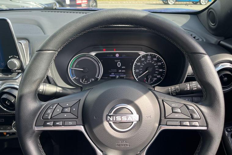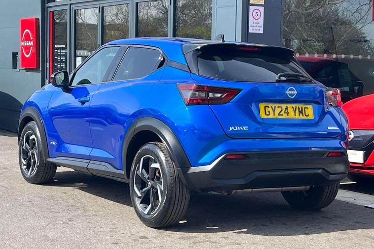 This 2024 Nissan Juke N Connecta presents an exceptional ownership proposition, having been cherished by just one owner from new and boasting remarkably low mileage for its age at only 10, 800 miles. This Euro 6 compliant 1.6 litre petrol hybrid model is Nissan manufacturer approved, offering peace of mind. Inside, you'll find seamless connectivity with Apple CarPlay and Google Android Auto, while the Intelligent Key system provides keyless entry and walk away lock functionality. Comfort is assured with automatic climate control, ensuring a pleasant environment no matter the weather.The Juke N Connecta stands out with its impressive fuel economy, achieving a highlight of 55 mpg, which indicates it is more economical than many similar vehicles. Furthermore, its low insurance group and low CO2 emissions highlight its cost effectiveness and environmental consideration, making it a sensible choice for a wide range of drivers..