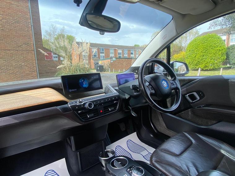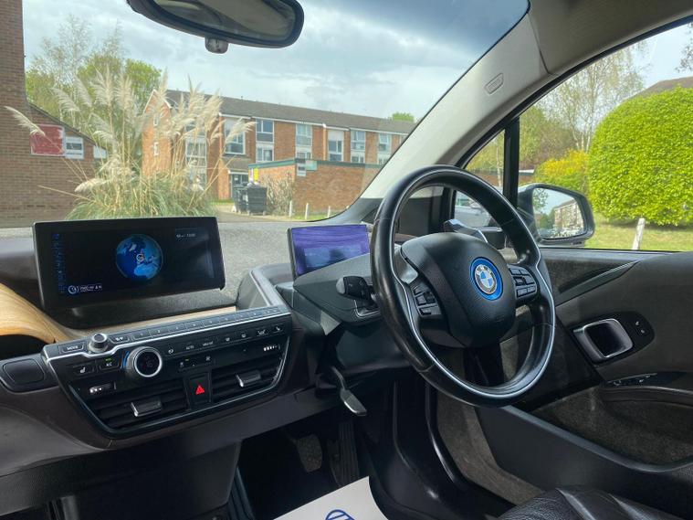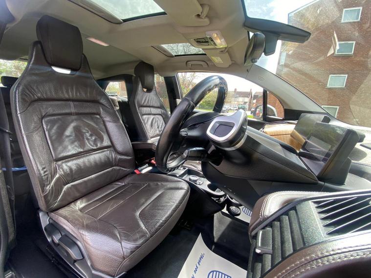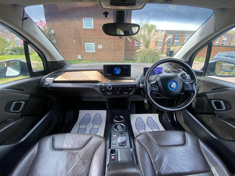 TOP SPEC, PAN ROOF, HARMAN KARDON SOUND SURROUND, LEATHER HEATED SEATS, 12 MONTHS MOT, REPLACED ALL 4 BRAND NEW TYRES AND REAR BRAKE PADS, 19IN ALLOY WHEELS - I LIGHT STREAMLINE STAR-SPOKE STYLE - 427 / 5.7IN COLOUR TFT DISPLAY - INSTRUMENT CLUSTER / 6.5IN COLOUR DISPLAY SCREEN / AIR CON / HARMAN KARDON SOUND SYSTEM / DAB / RADIO / BLUETOOTH / AUX / USB / DAYTIME RUNNING LIGHTS - LED BMW I DESIGN / DRIVE PERFORMANCE CONTROL WITH ECO PRO PLUS - ECO PRO AND COMFORT MODES / DYNAMIC BRAKE LIGHTS / HEAT PROTECTION GLAZING WITH GREEN TINT / HILL START ASSIST / INTERIOR LIGHTING / NAVIGATION SYSTEM - BMW BUSINESS ADVANCED / GLASS SUNROOF / INTERIOR WORLD SUITEThis 2014 BMW i3 boasts a clear vehicle history, offering peace of mind alongside its electric driving experience. As an electric vehicle, it features a 22 kWh battery that provided a maximum range of 100 miles when new. Charging at home with a 7kW charger takes approximately 3 hours. Inside, you'll find the sophisticated Interior World Suite with Natural Leather in Dalbergia Brown and a Black Interior. This model also includes the Winter Package for heated seats, Enhanced Bluetooth Telephone Preparation with USB Audio Interface, LED Headlights, and an Auxiliary Cabin Heating System for climate controlled comfort.The BMW i3 delivers an engaging drive, highlighted by its impressive 0-62mph acceleration time of just 7.2 seconds. This performance, combined with its electric powertrain and the specific features like the Winter Package and advanced Bluetooth, sets it apart from other vehicles in its class, offering a blend of efficiency, technology, and driving enjoyment..